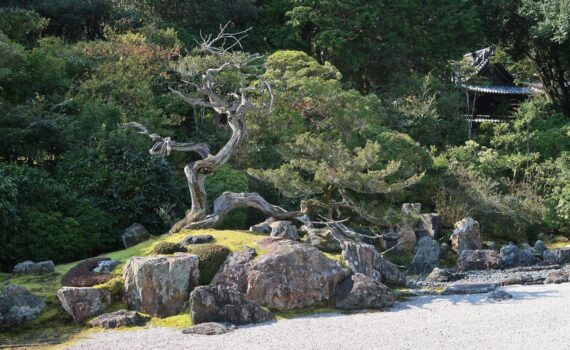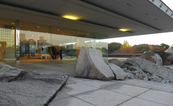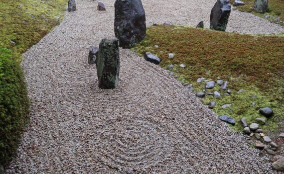 Shunmyō Masuno 枡野俊明, né en 1953, incarne l’alliance entre la voie du zen, la création paysagère et l’enseignement. Prêtre en chef du temple Kenkō-ji 建功寺 de Yokohama il a fondé le cabinet Japan Landscape Consultants en 1982 pour la conception et l’aménagement de jardins japonais. En 1991, il imagine un jardin sec « kare-san-sui » pour l’Ambassade du Canada à Tōkyō. En 2012, sur le toit du Centre commercial CIAL de la gare JR de Tsurumi à Yokohama, il aménage les deux jardins secs Seifu-en 清風苑 et Zagetsu-tei 坐月亭 ainsi que le café Zagetsu.