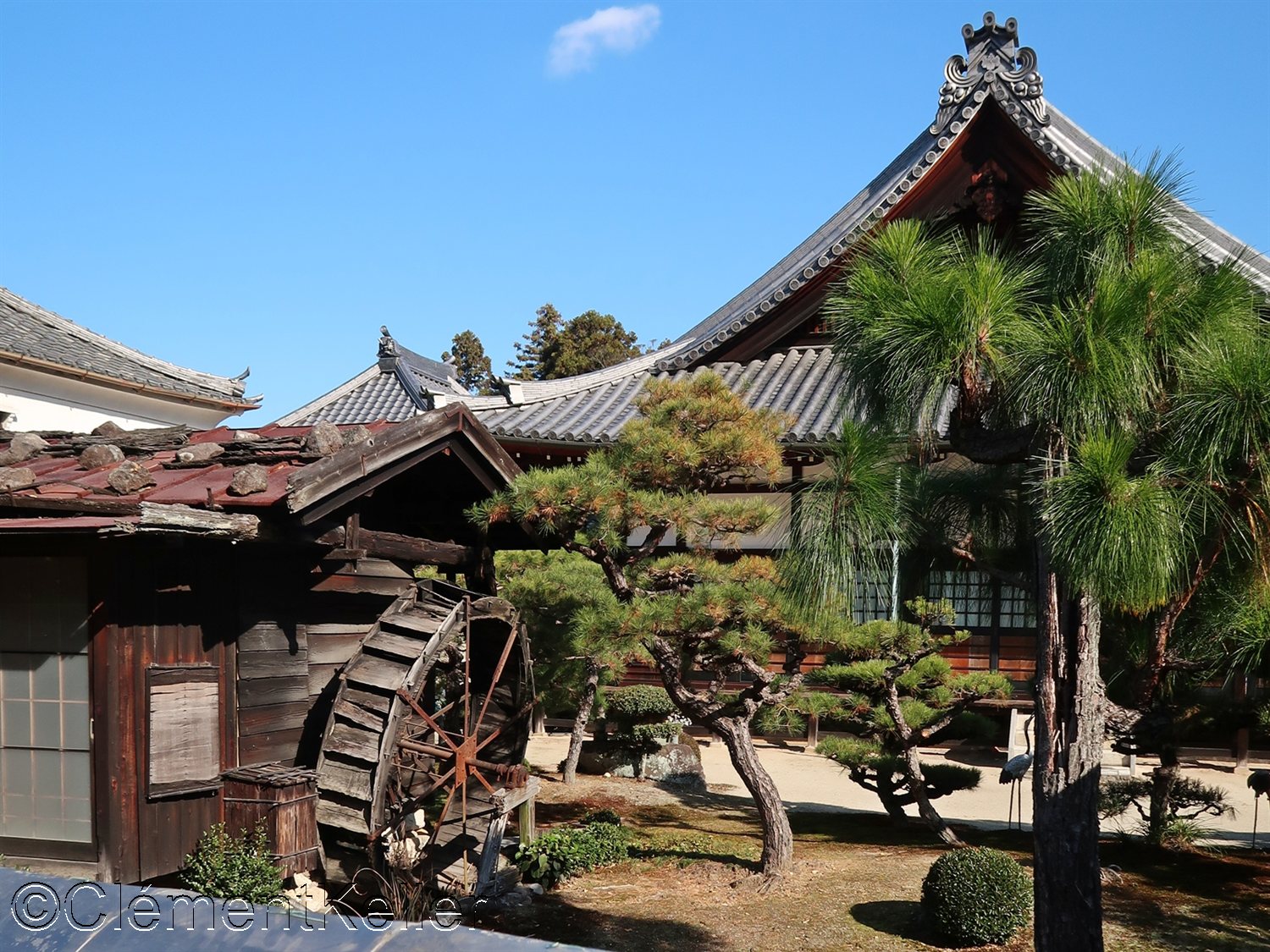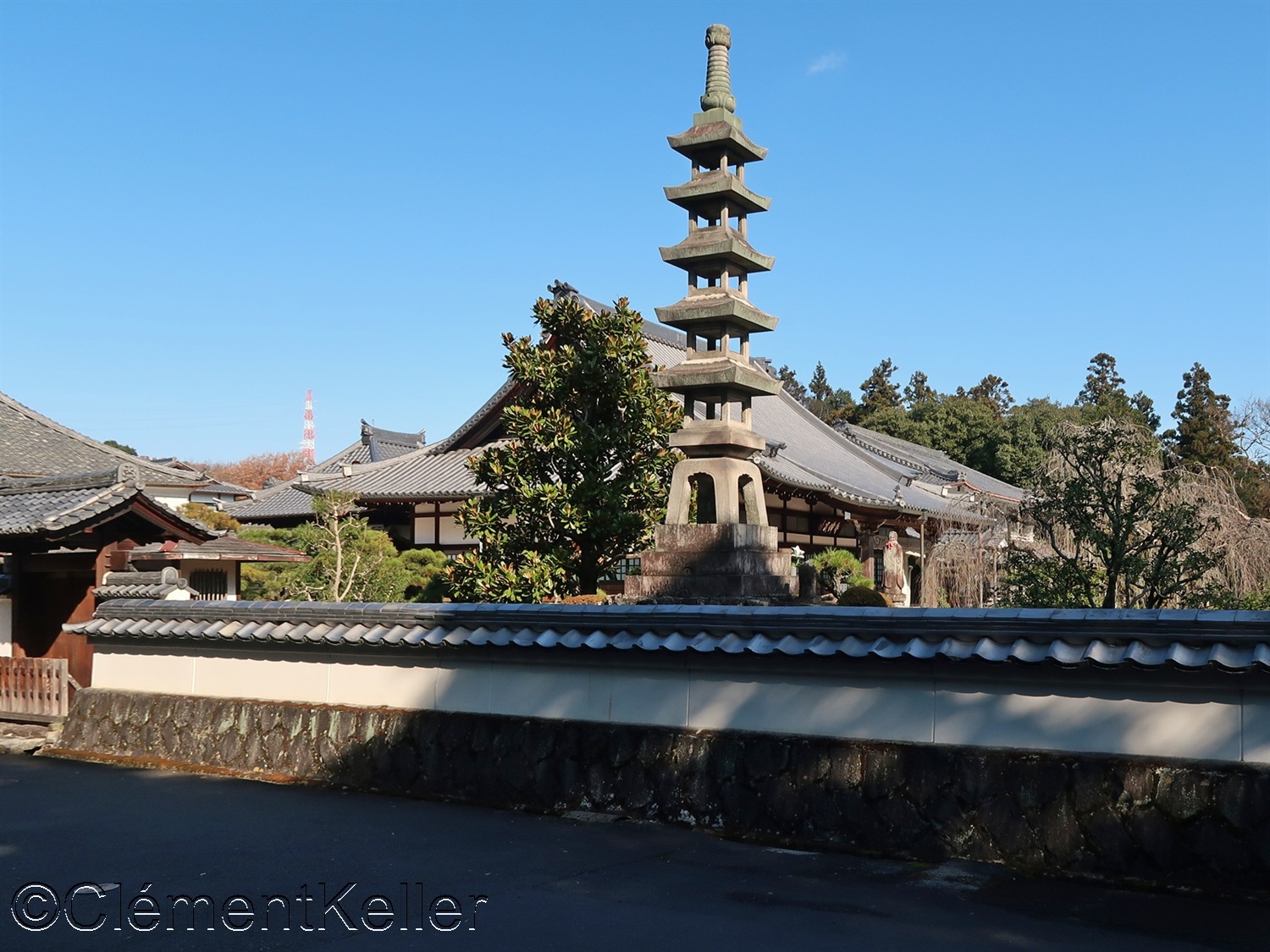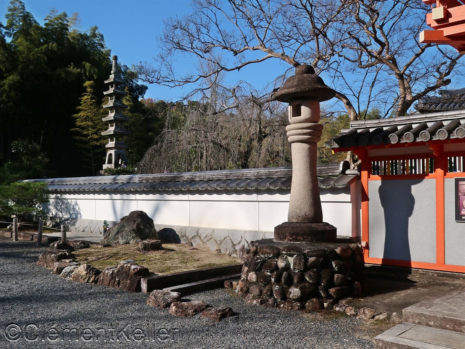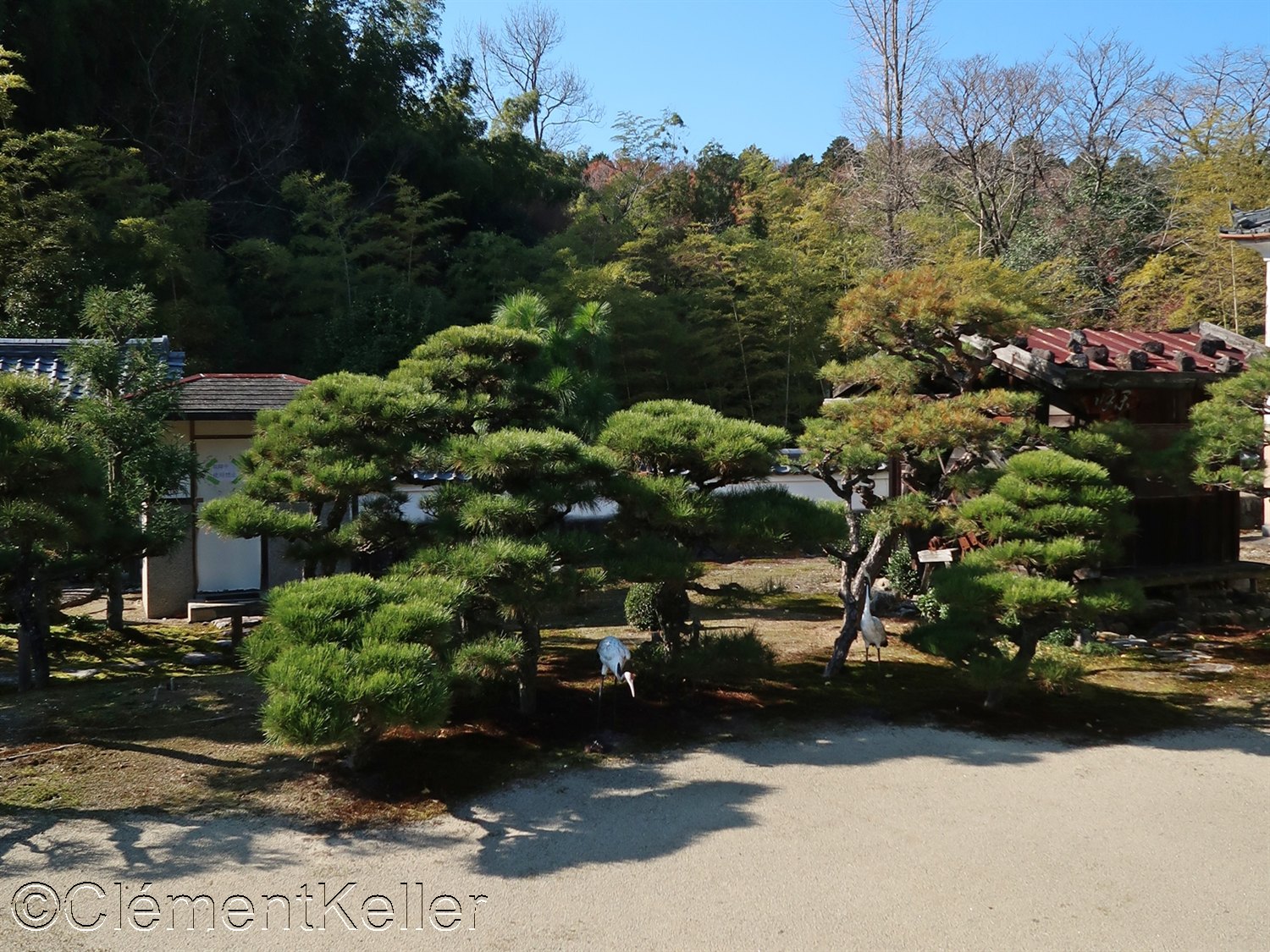 Vues de la pagode Senrei-tō et des pins taillés en « daizuki ».
