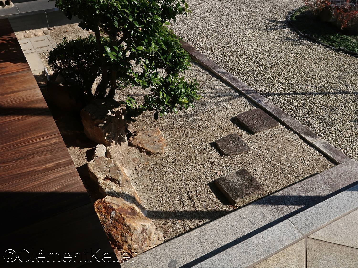 Cette transition du traitement minimaliste minéral du jardin sec vers une atmosphère plus ombragée et végétale s’inscrit dans une conception moderne mais respectueuse des principes zen : sobriété, profondeur spatiale et modulation saisonnière.