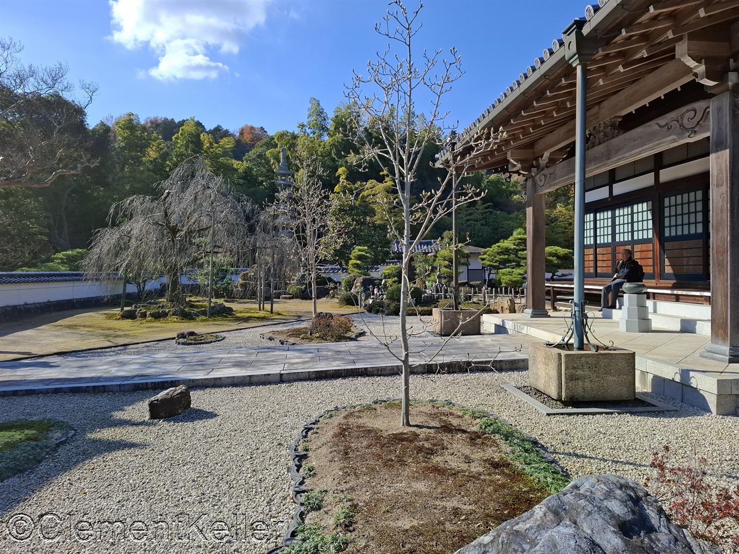 La porte d’entrée du temple, et son approche depuis le temple Eihō-ji situé en contrebas.