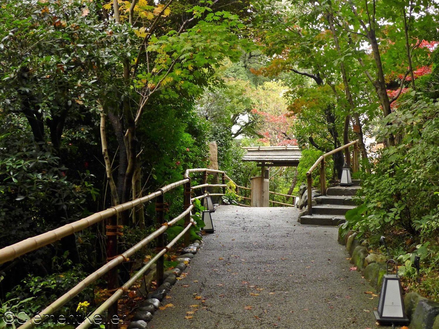 A une dizaine de minutes à pied en allant vers l’Ouest, l’on peut rejoindre le jardin Higo-Hosokawa Teien 肥後細川庭園 aussi présenté sur le site japonjardin.fr.