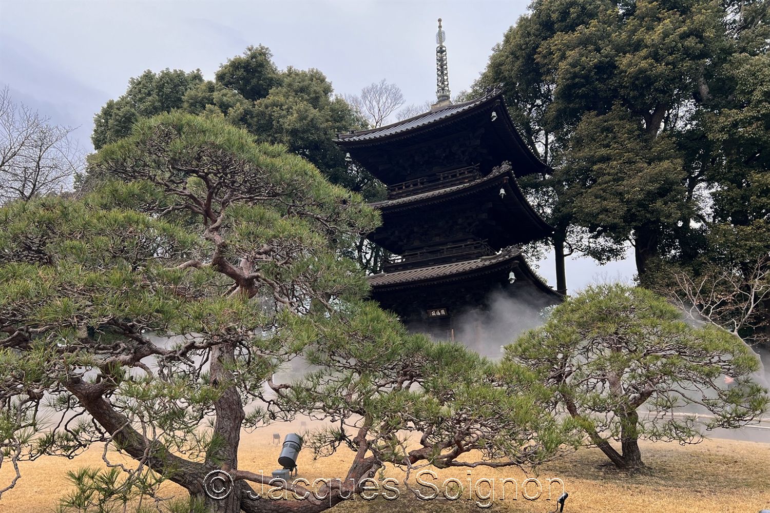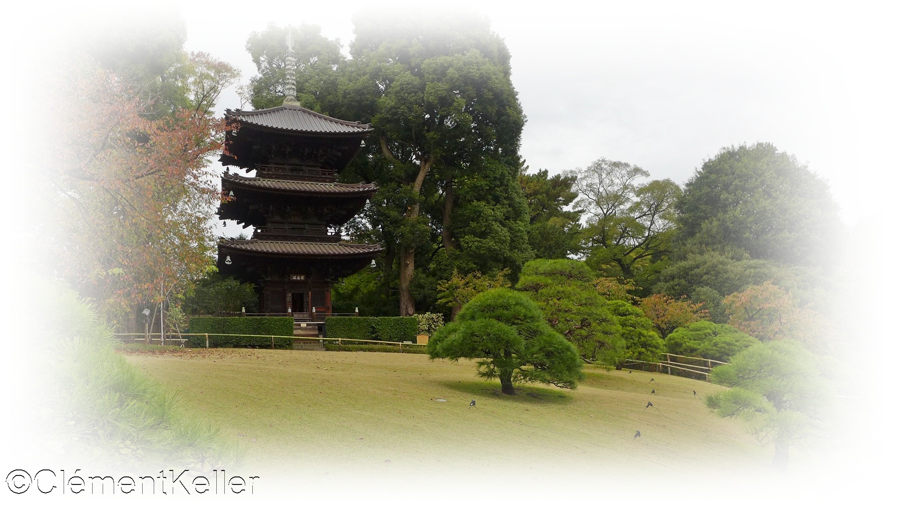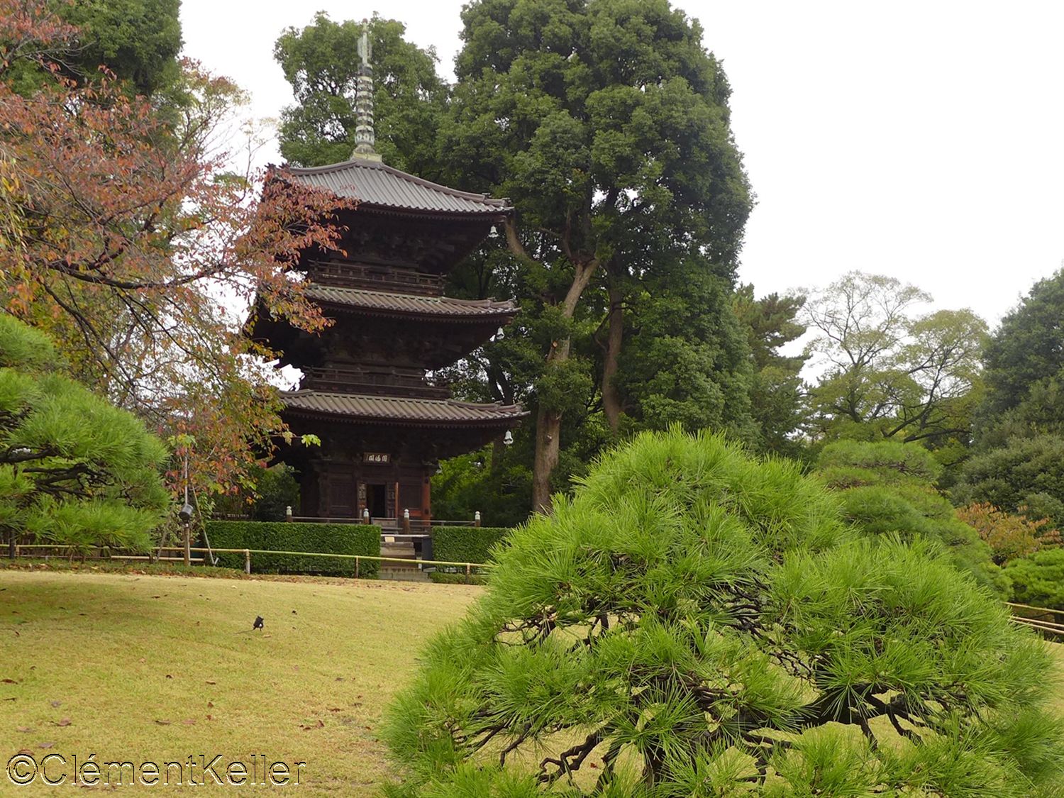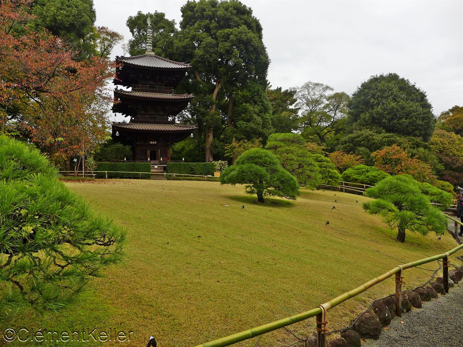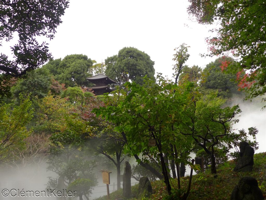 Sur la colline la plus haute se dresse la pagode à trois étages Entsūkaku 円通閣, datant du XVème siècle et transférée en 1925 depuis le temple Chikurin-ji 竹林寺 dans l’actuelle préfecture de Hiroshima.