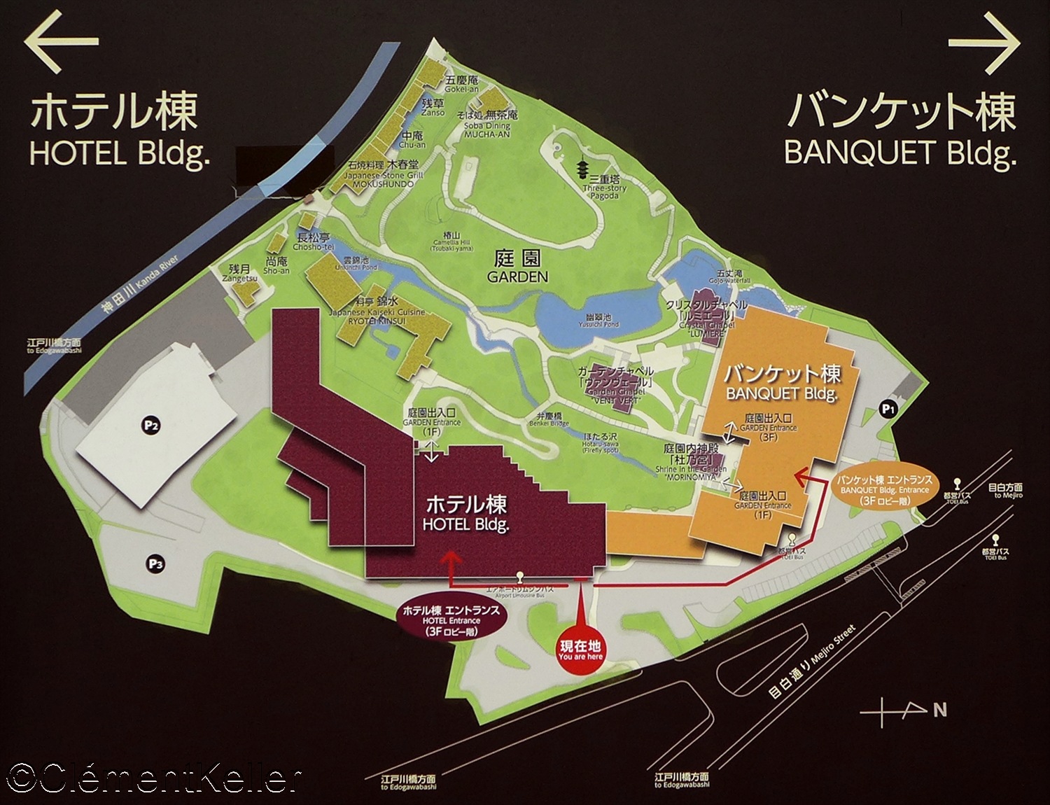 L’Hôtel Chinzanso Tokyo ホテル椿山荘東京 est situé dans l’arrondissement de Bunkyō-ku 文京区 à Tōkyō, sur un terrain vallonné dominant la vallée de la rivière Kanda 神田川. Malgré la densité urbaine, le site conserve près de sept hectares de verdure, formant une enclave paysagère exceptionnelle dans la capitale.