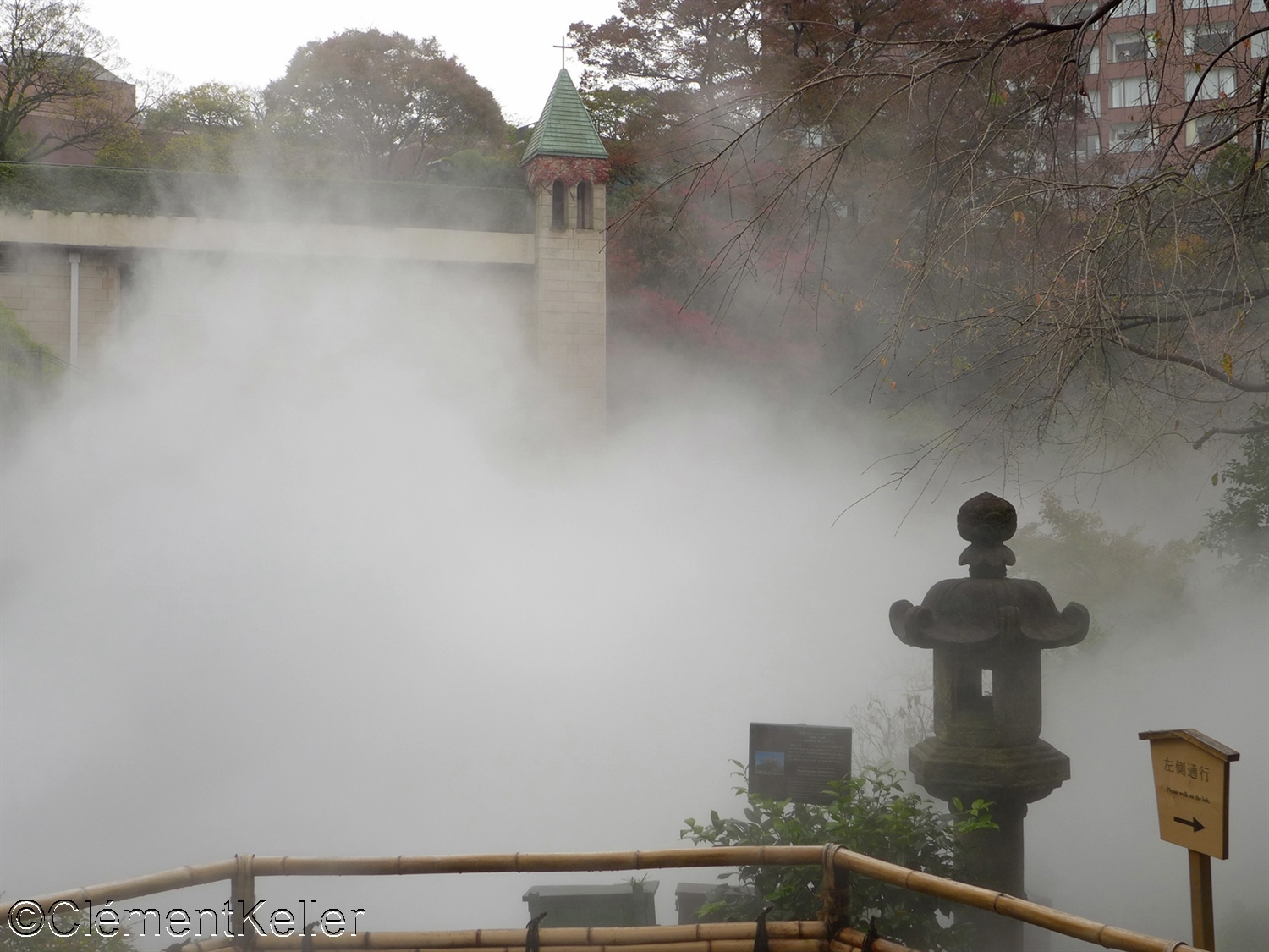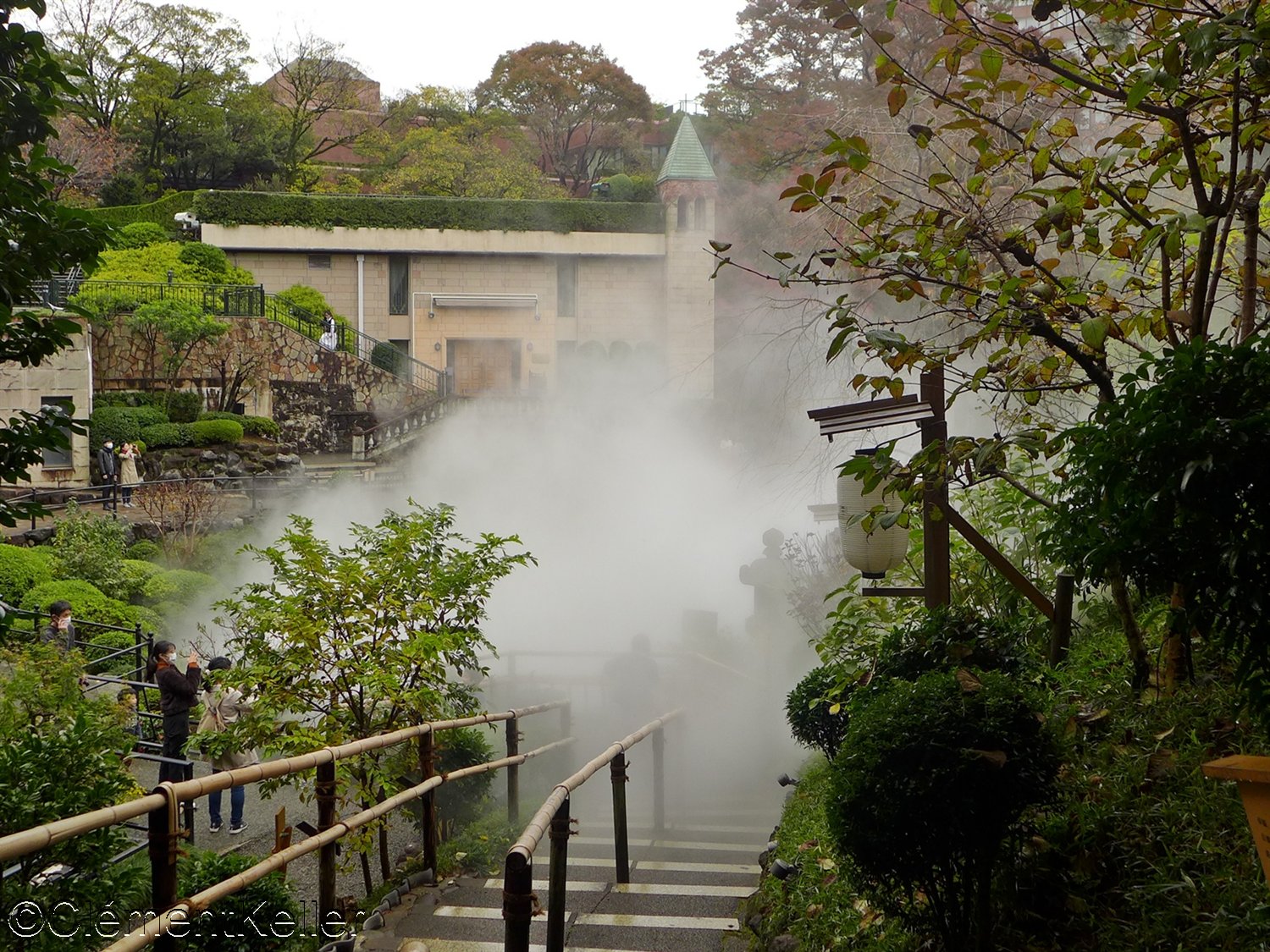 Les forts reliefs créent des scènes différenciées et la vaporisation artificielle provoquée sur le bassin entouré des petites cascades Gojo 五丈滝 formant un cirque à l’extrémité nord du jardin apporte une atmosphère mystérieuse.