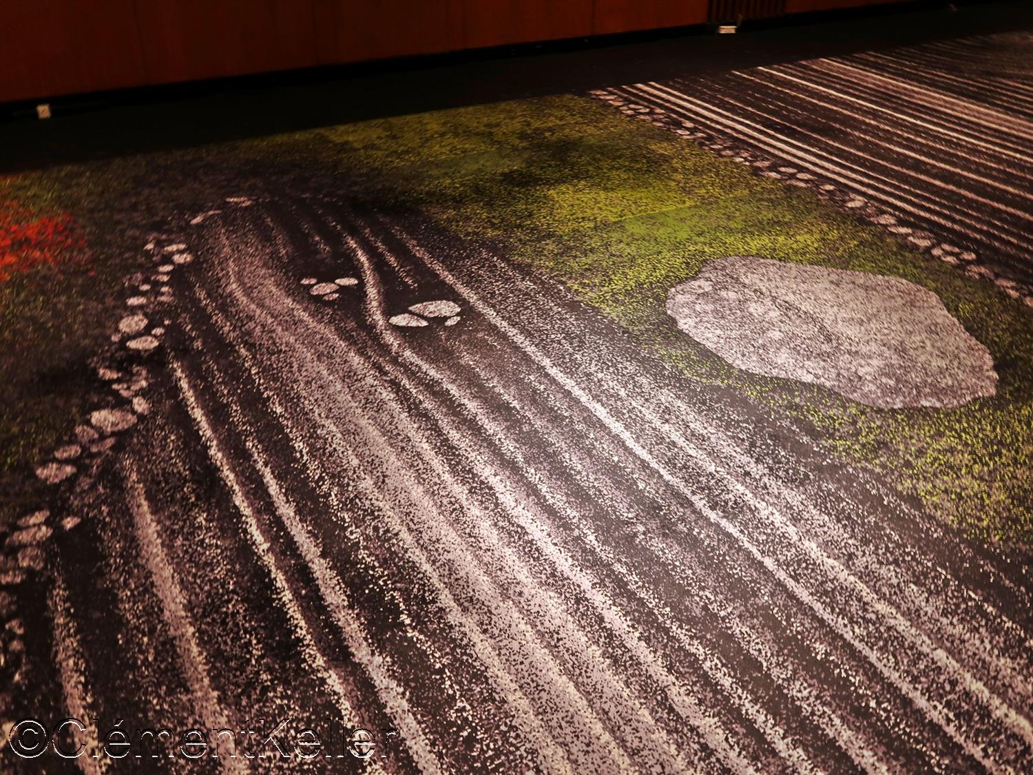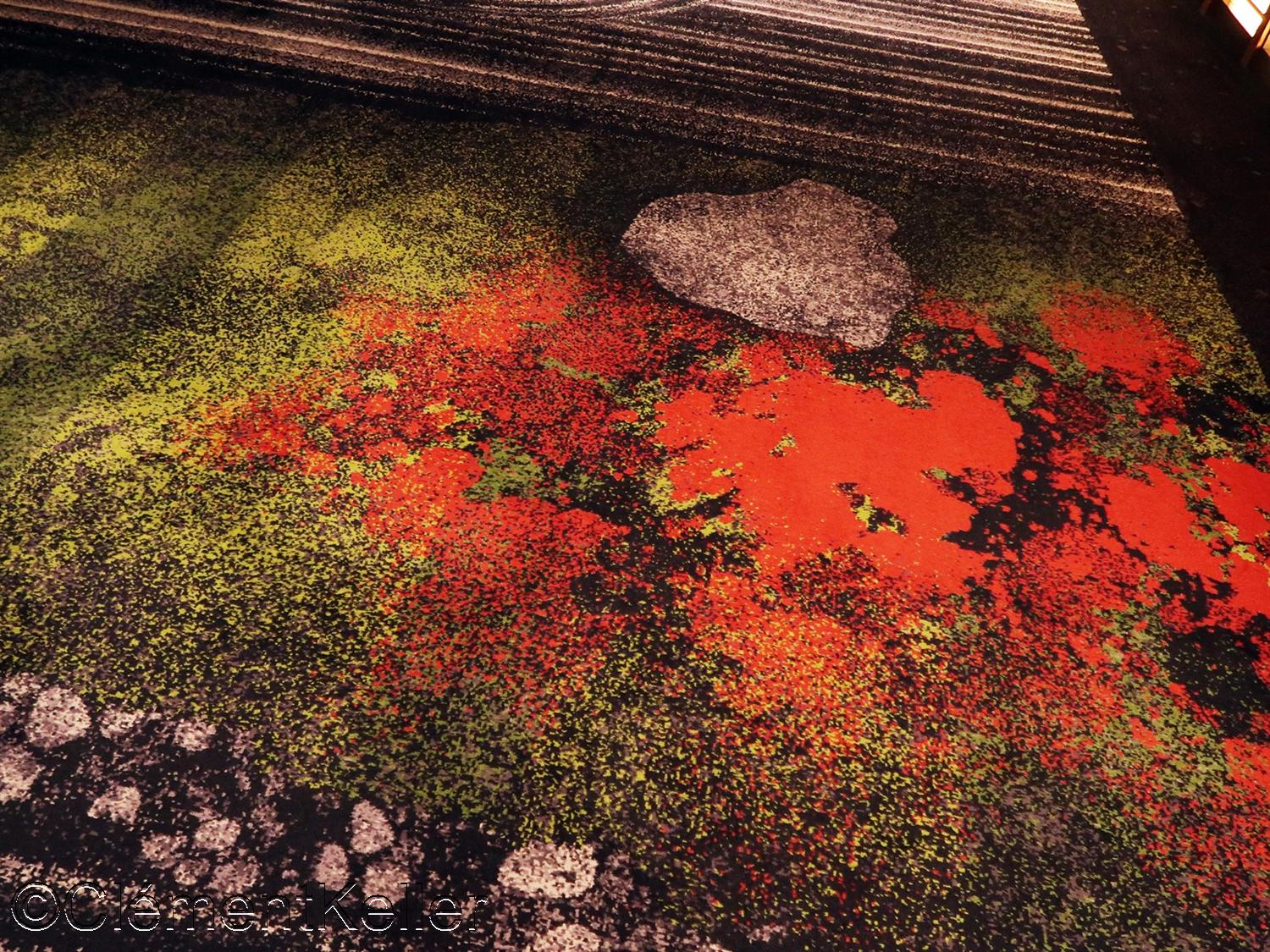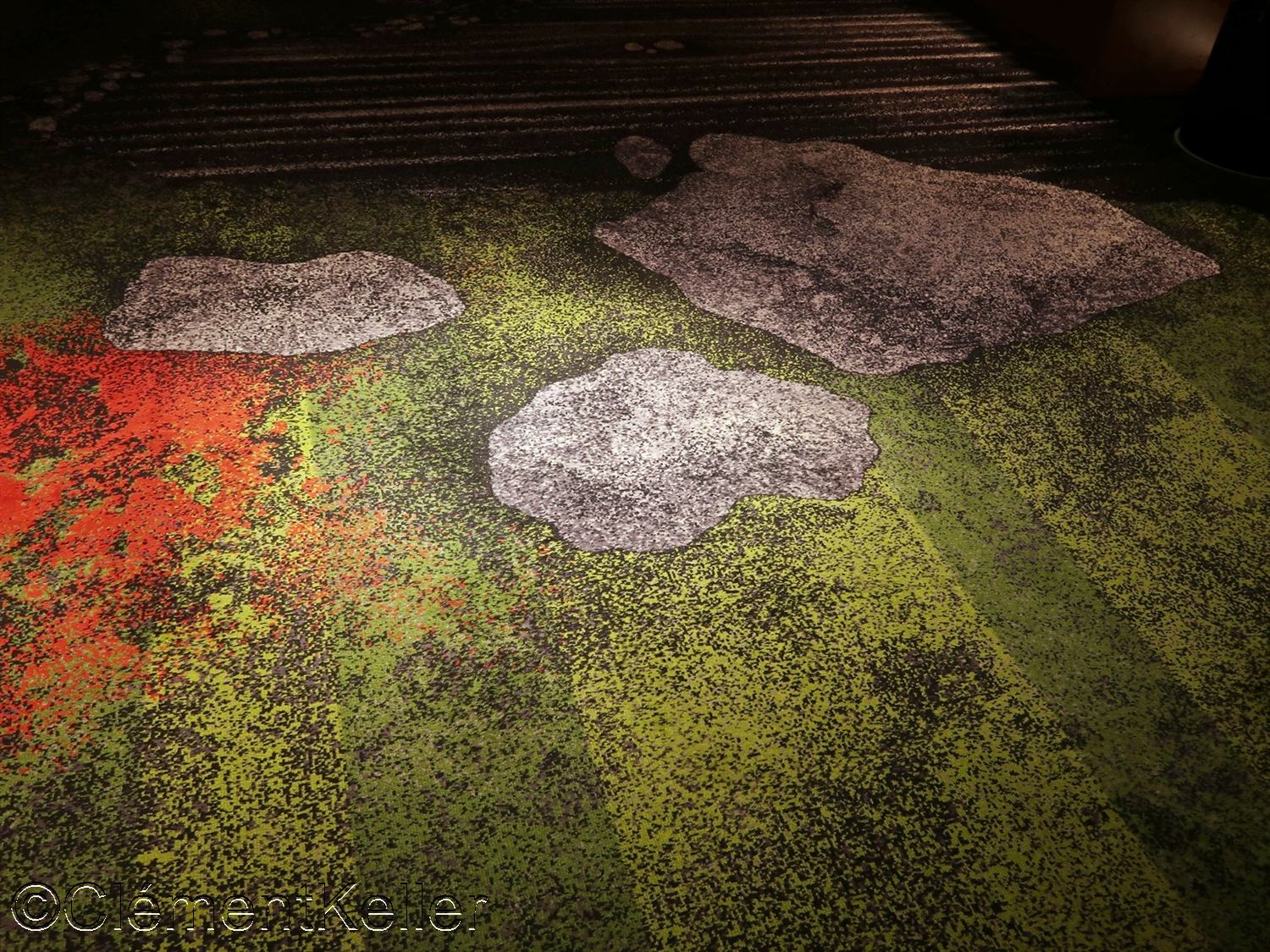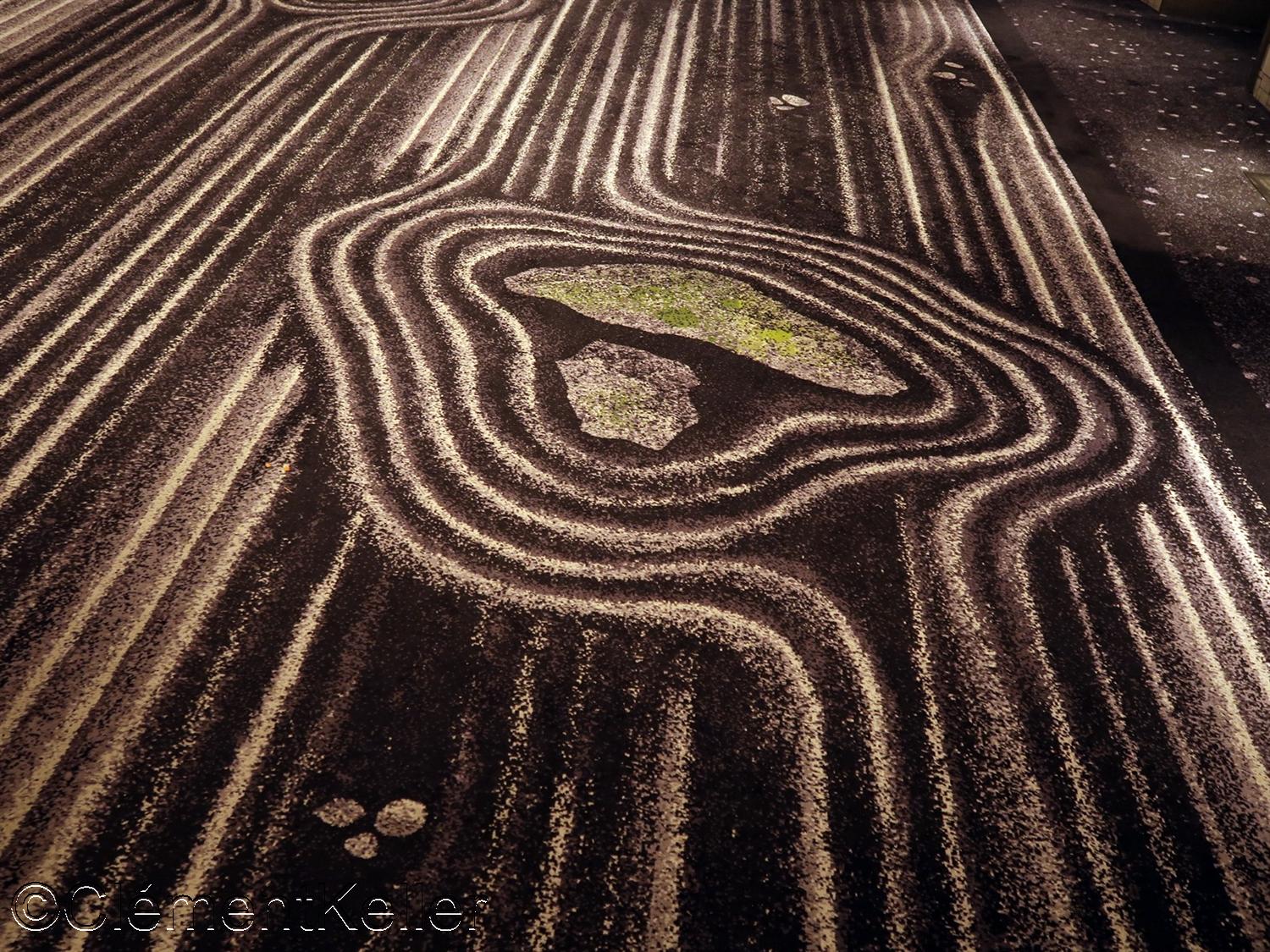 Les couloirs du complexe sont couverts d’une moquette aux motifs de jardins japonais.