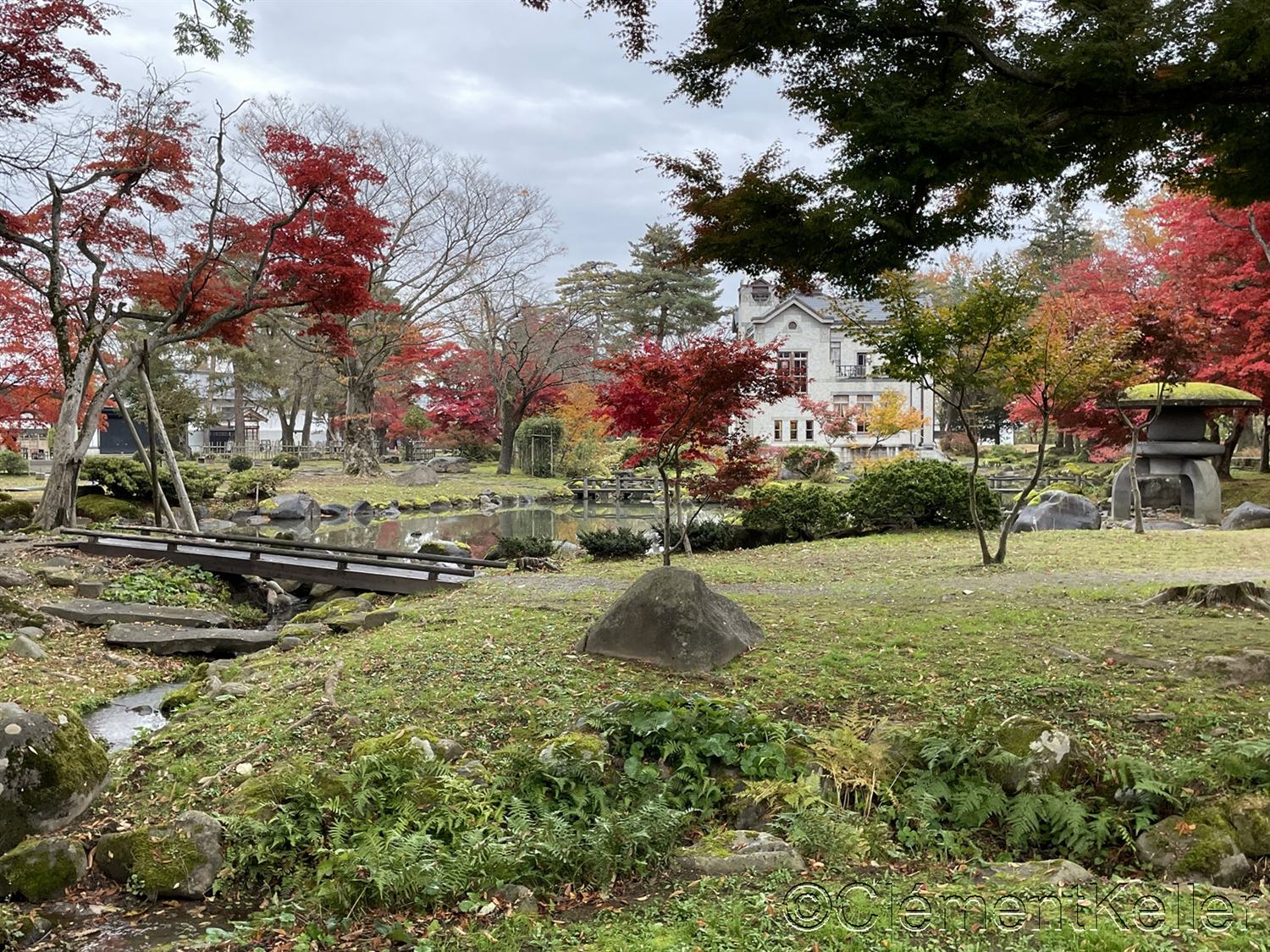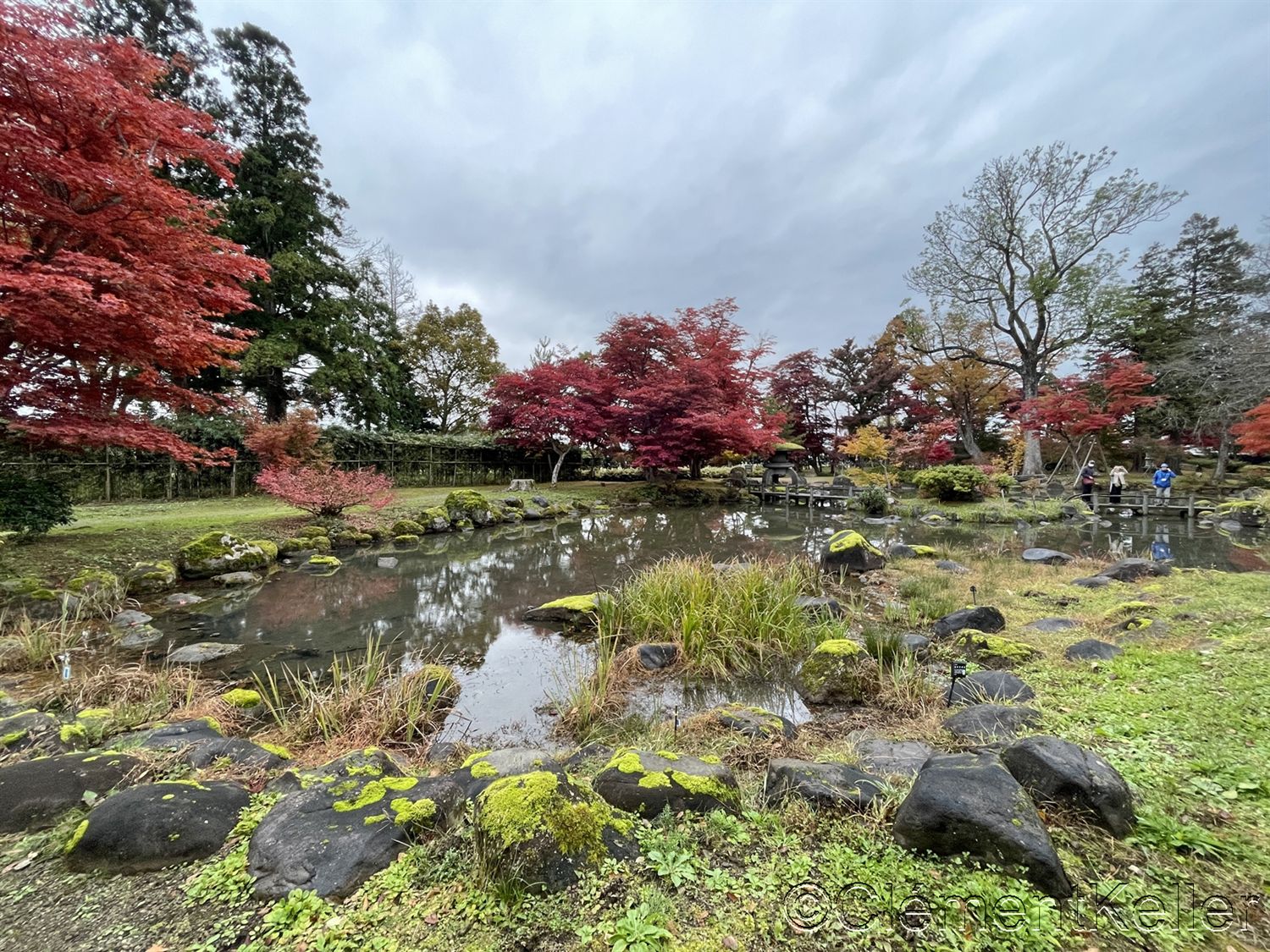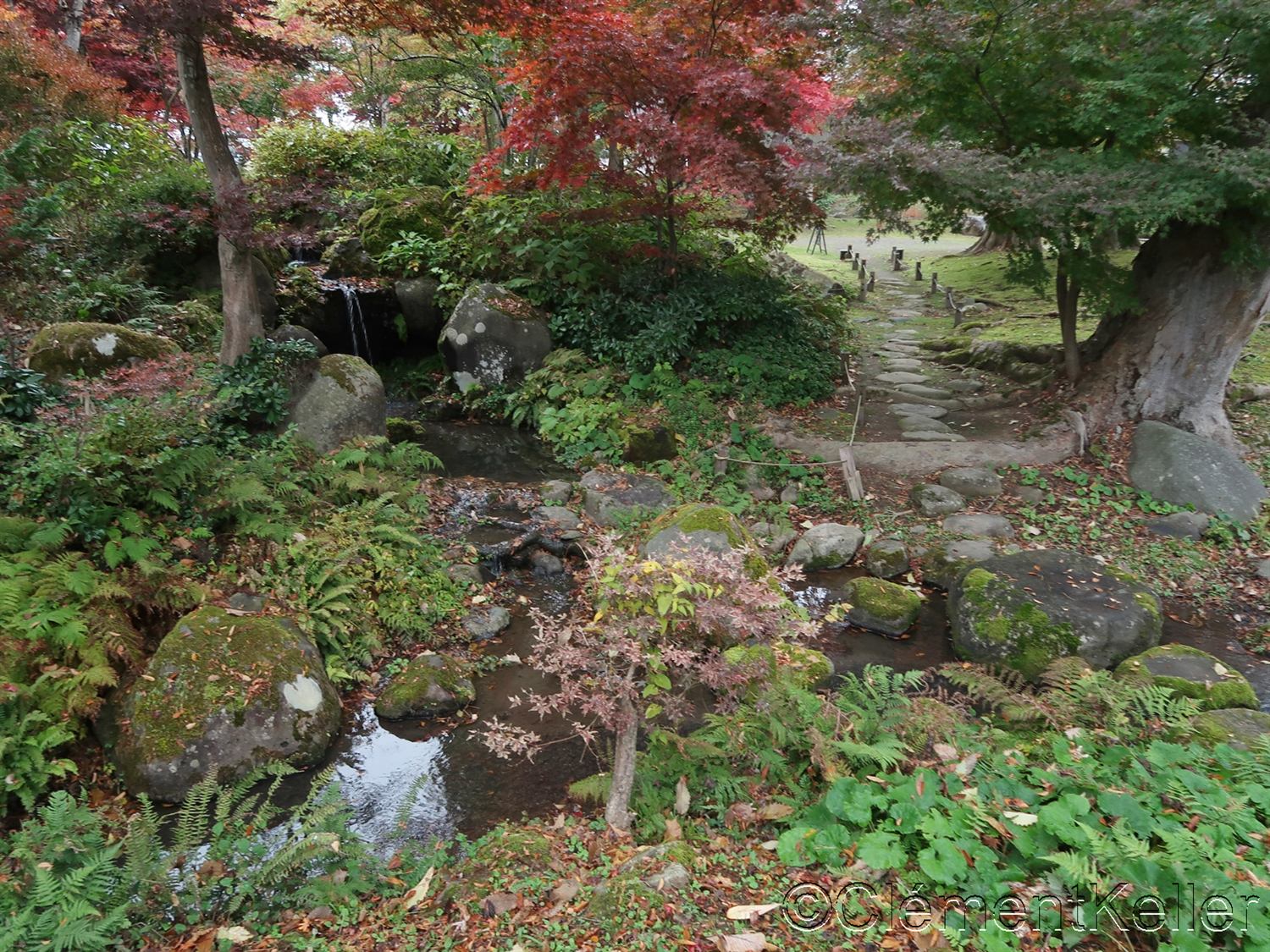 Le jardin du clan Ikeda 池田氏庭園 est un vaste jardin de promenade, « chisen-kaiyū-shiki teien », aménagé à la fin de l’ère d’Edo et complété au début de l’ère de Meiji. La famille, qui était à l’origine une famille de samouraïs de la province de Settsu, s’était installée dans la province de Dewa au début de la période Edo, devenant propriétaires fonciers et agriculteurs. Les membres du clan firent fortune au moment de la restauration de Meiji, se classant parmi les trois plus grands propriétaires fonciers de la région de Tōhoku et s’engagèrent dans des oeuvres de bienfaisance et de mécénat dans les arts.