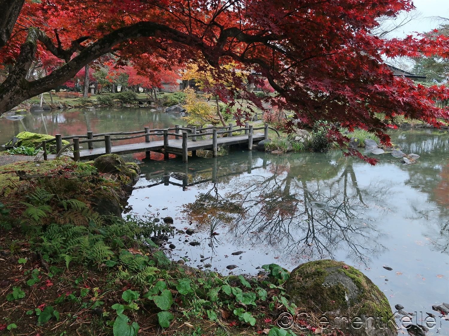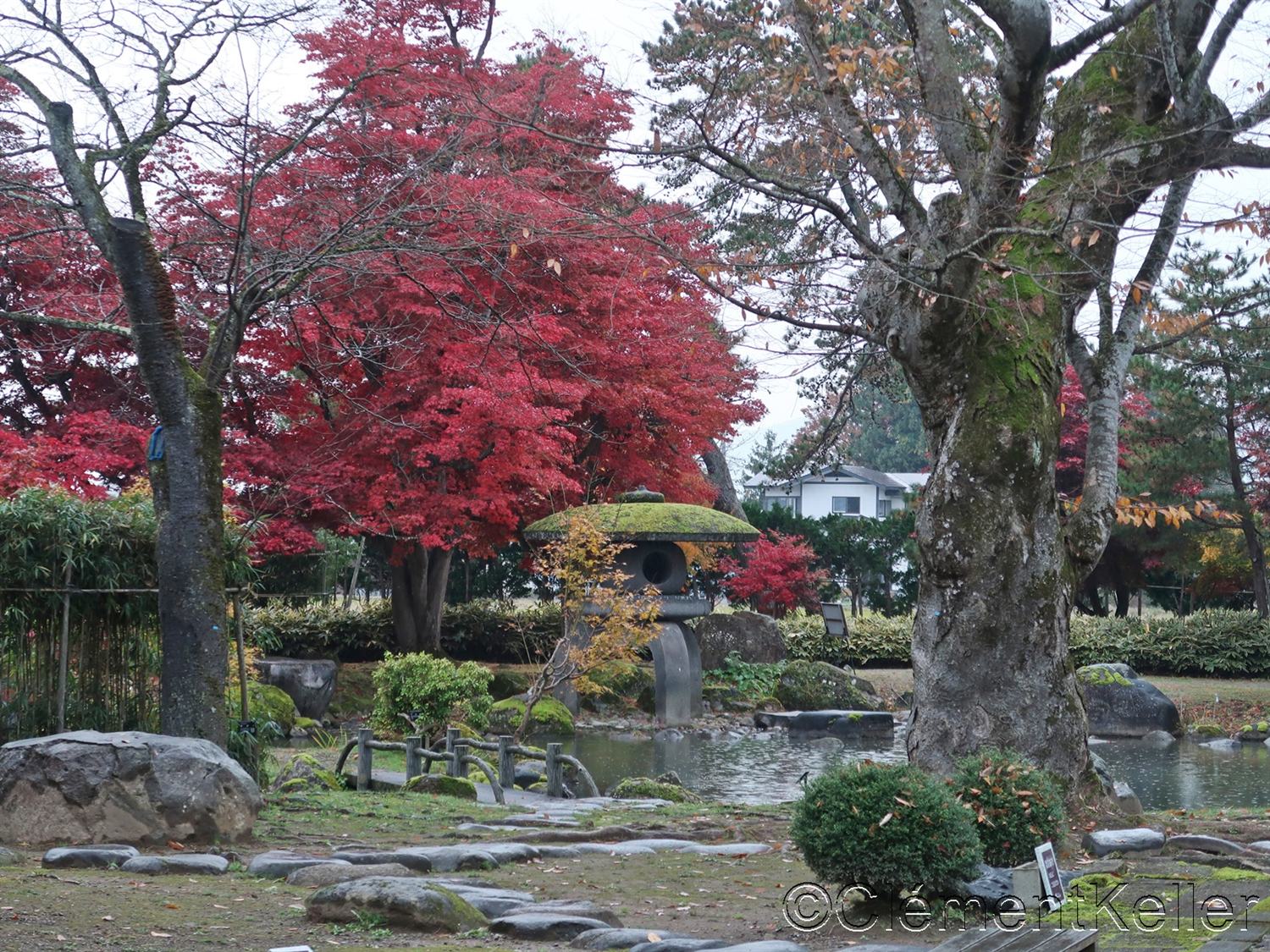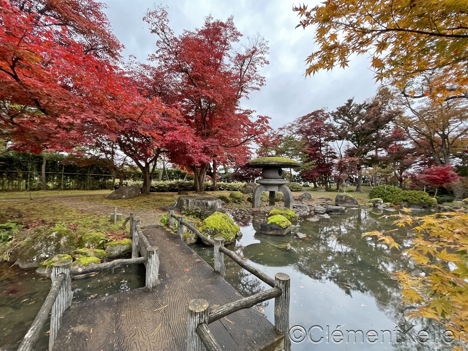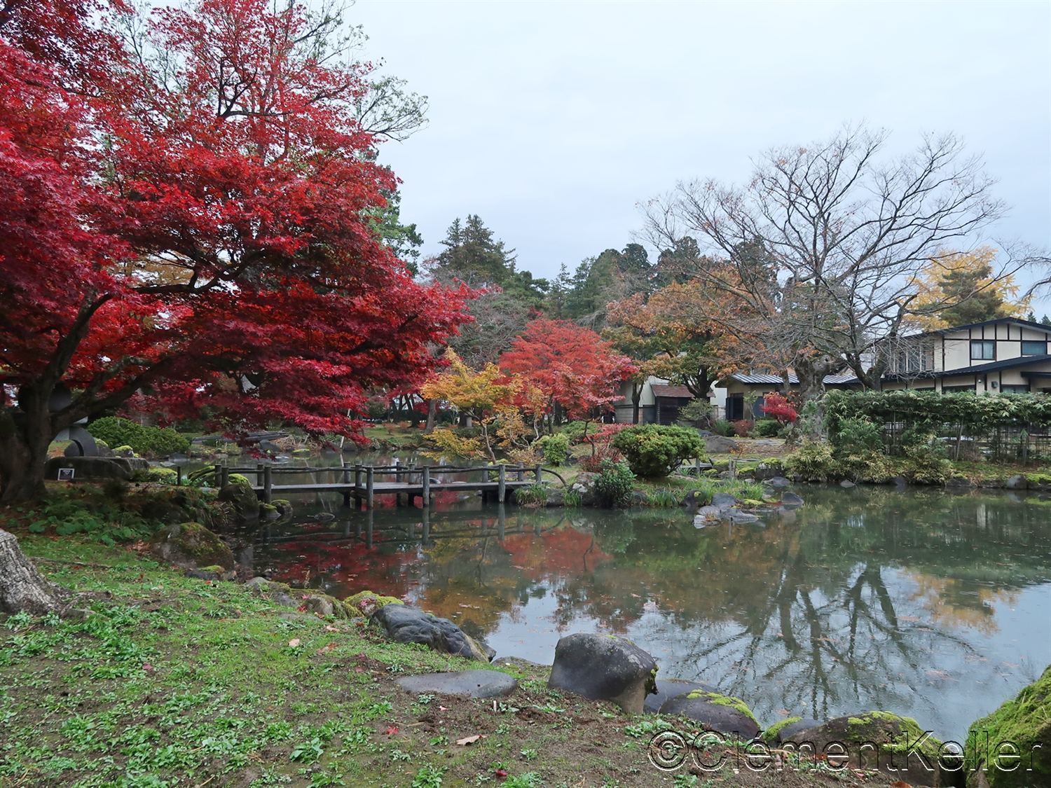 Le jardin du clan Ikeda 池田氏庭園 est un vaste jardin de promenade, « chisen-kaiyū-shiki teien », aménagé à la fin de l’ère d’Edo et complété au début de l’ère de Meiji. La famille, qui était à l’origine une famille de samouraïs de la province de Settsu, s’était installée dans la province de Dewa au début de la période Edo, devenant propriétaires fonciers et agriculteurs. Les membres du clan firent fortune au moment de la restauration de Meiji, se classant parmi les trois plus grands propriétaires fonciers de la région de Tōhoku et s’engagèrent dans des oeuvres de bienfaisance et de mécénat dans les arts.