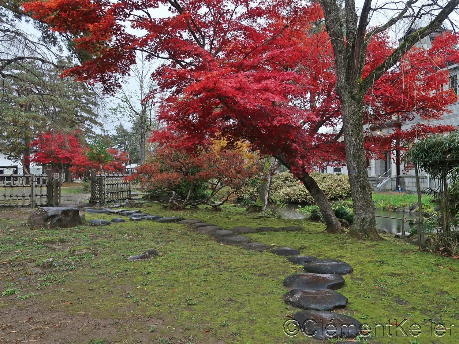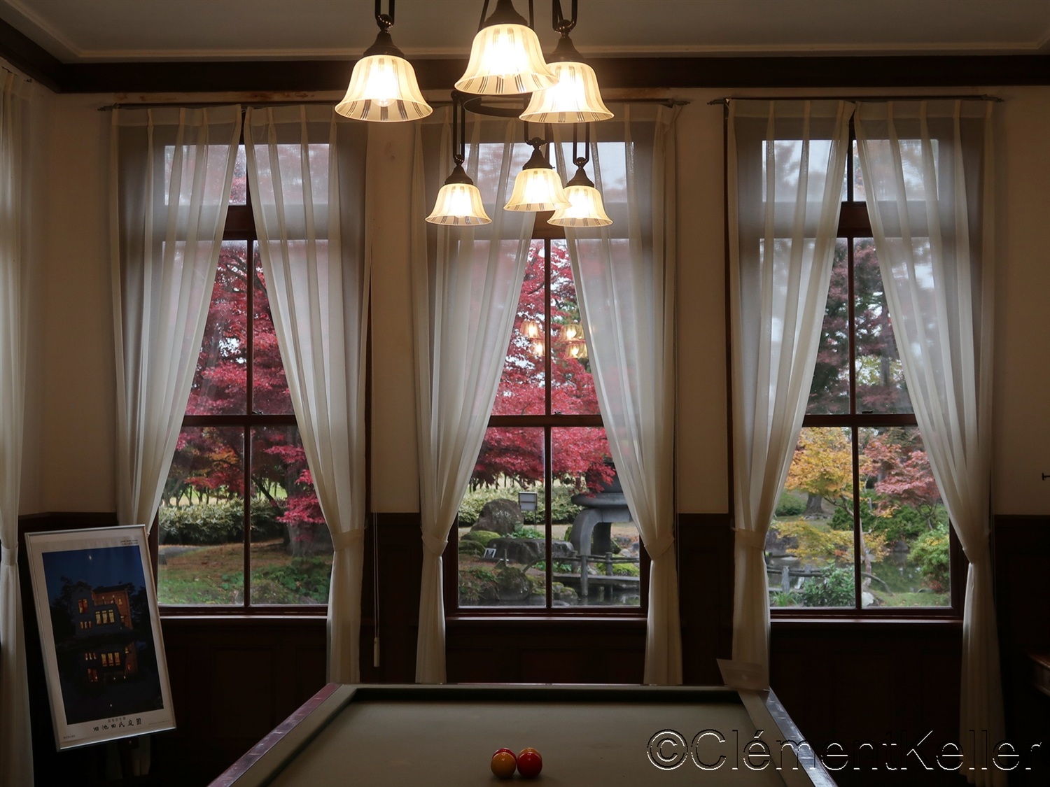 Le jardin vu depuis le salon de la maison « Western style ». Ce manoir de style occidental a été construit par l’architecte local Keisuke Imamura en 1923.
