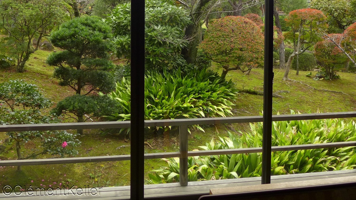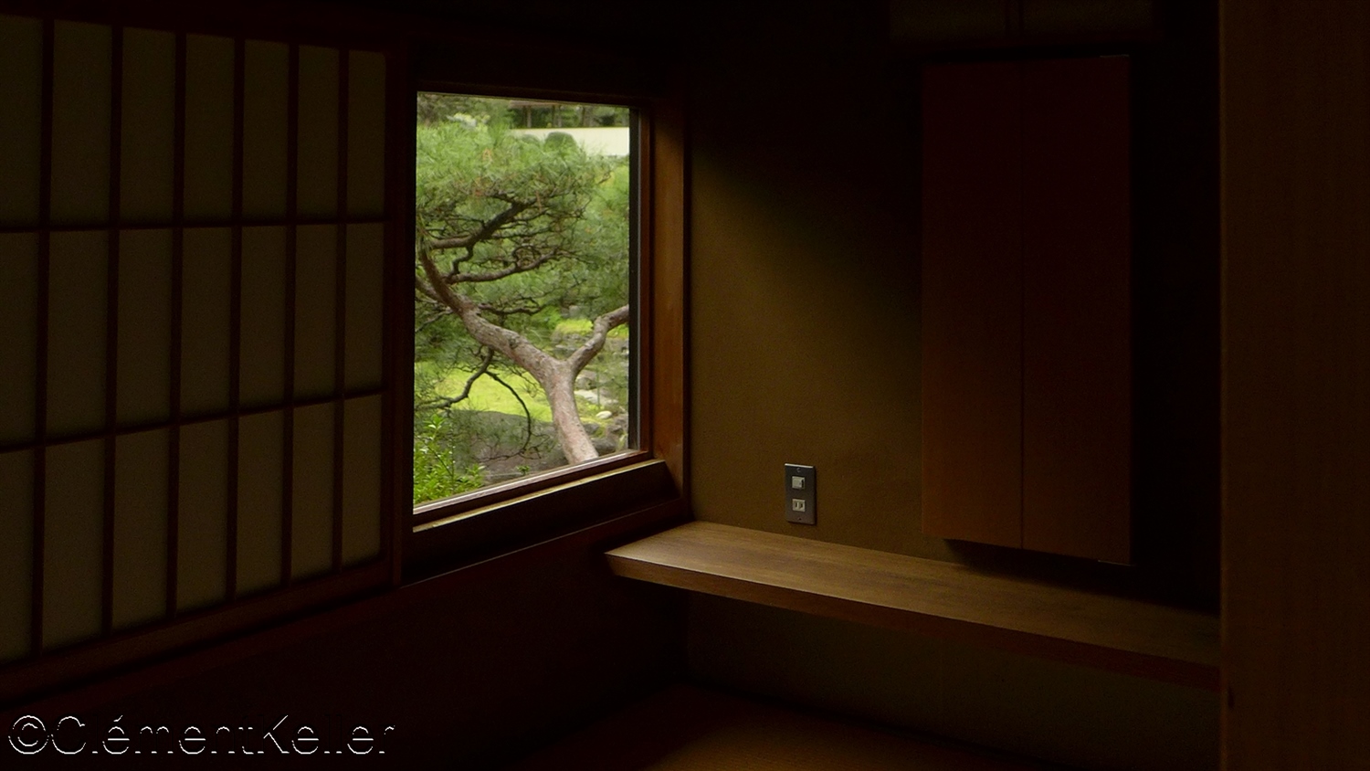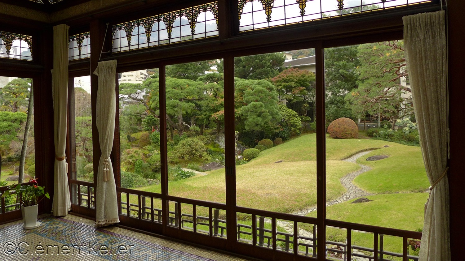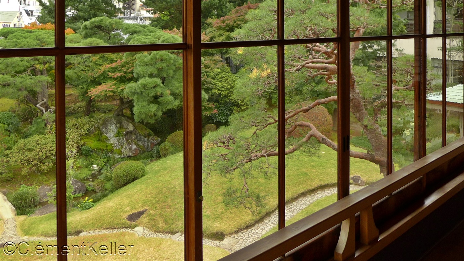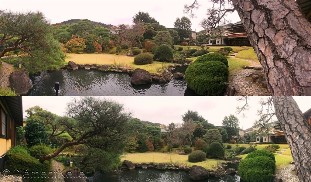 Les espaces intérieurs, mélange subtil d’architecture japonaise traditionnelle et d’éléments occidentaux de l’ère Taishō, s’ouvrent largement sur le jardin par de vastes baies vitrées et des vérandas en bois. Ainsi, depuis les salons, les pièces de réception et les chambres, le regard embrasse les jeux de lumière sur l’eau, la floraison des saisons et la composition savamment orchestrée des perspectives paysagères, offrant aux visiteurs un dialogue constant entre l’habitat et la nature.