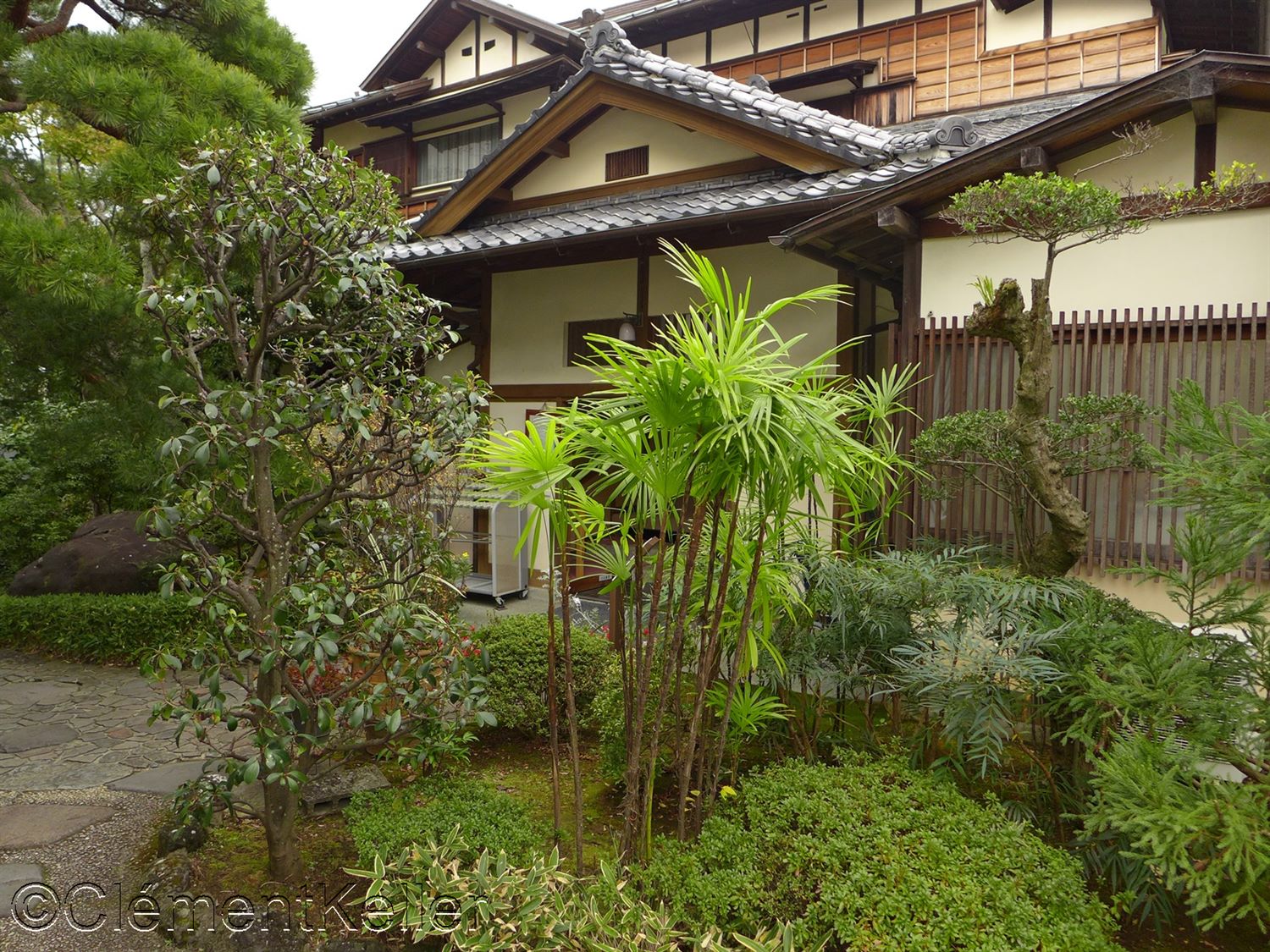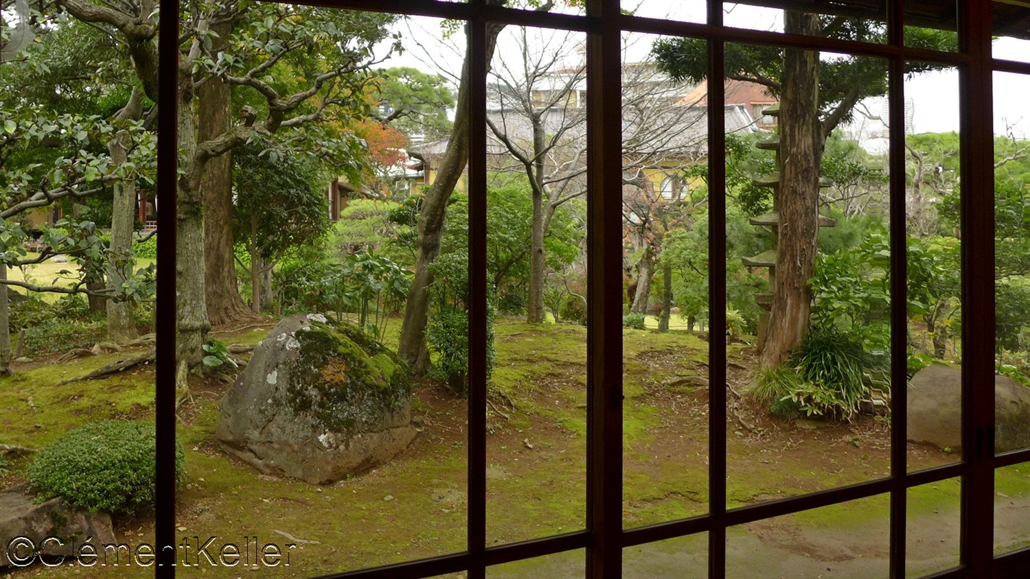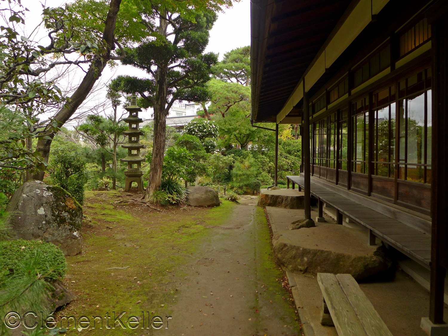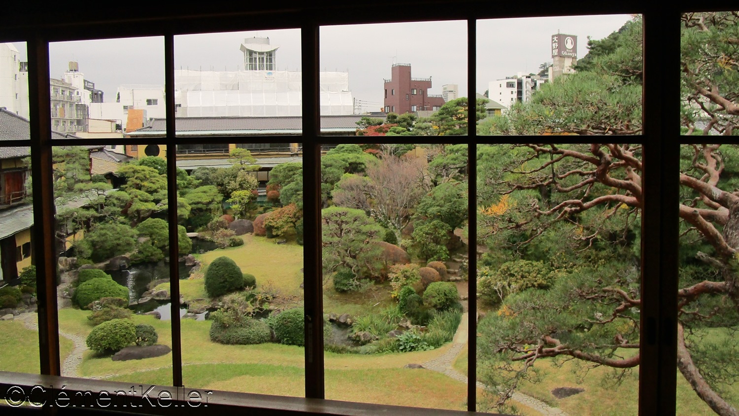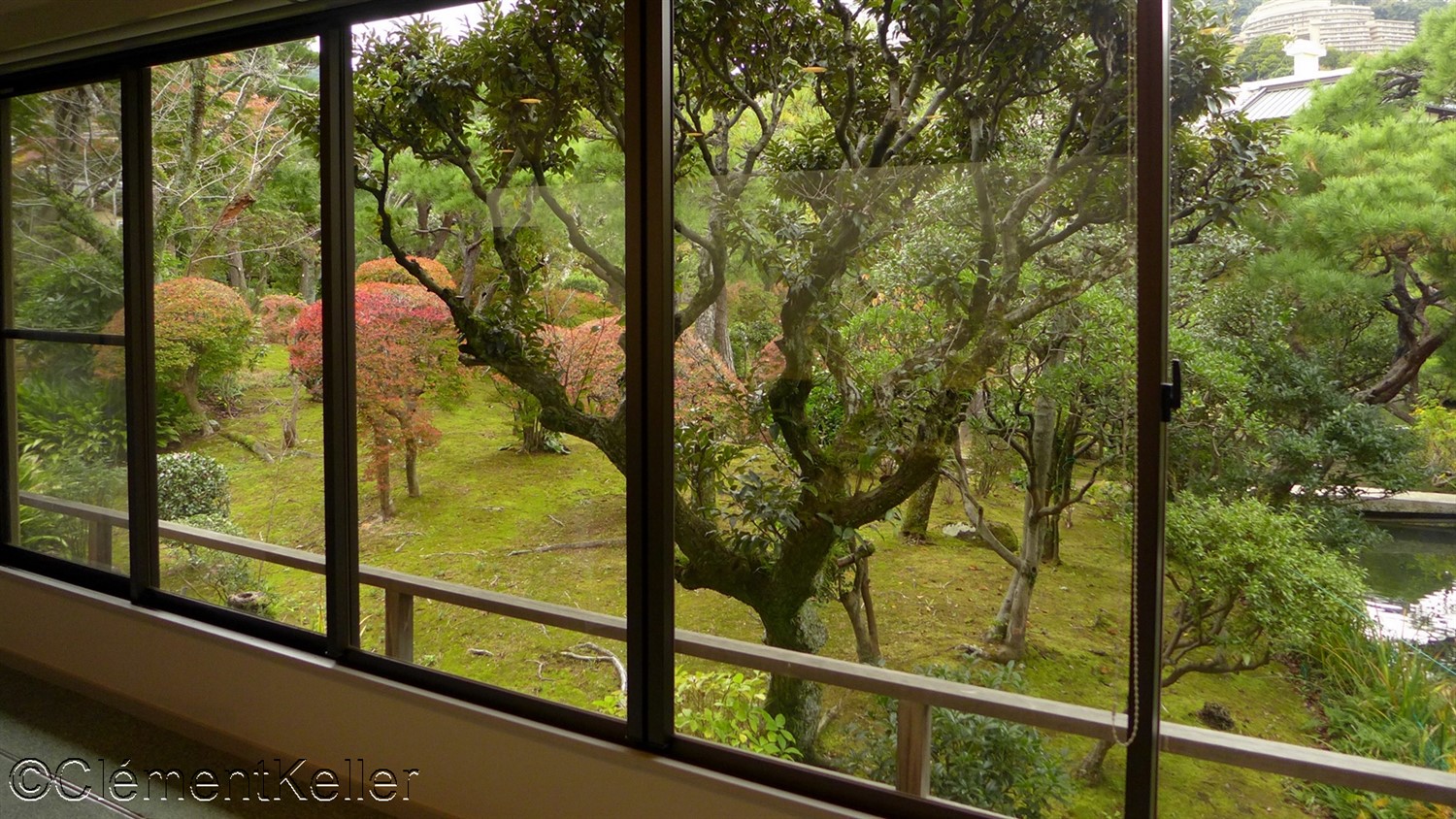 Les espaces intérieurs, mélange subtil d’architecture japonaise traditionnelle et d’éléments occidentaux de l’ère Taishō, s’ouvrent largement sur le jardin par de vastes baies vitrées et des vérandas en bois. Ainsi, depuis les salons, les pièces de réception et les chambres, le regard embrasse les jeux de lumière sur l’eau, la floraison des saisons et la composition savamment orchestrée des perspectives paysagères, offrant aux visiteurs un dialogue constant entre l’habitat et la nature.