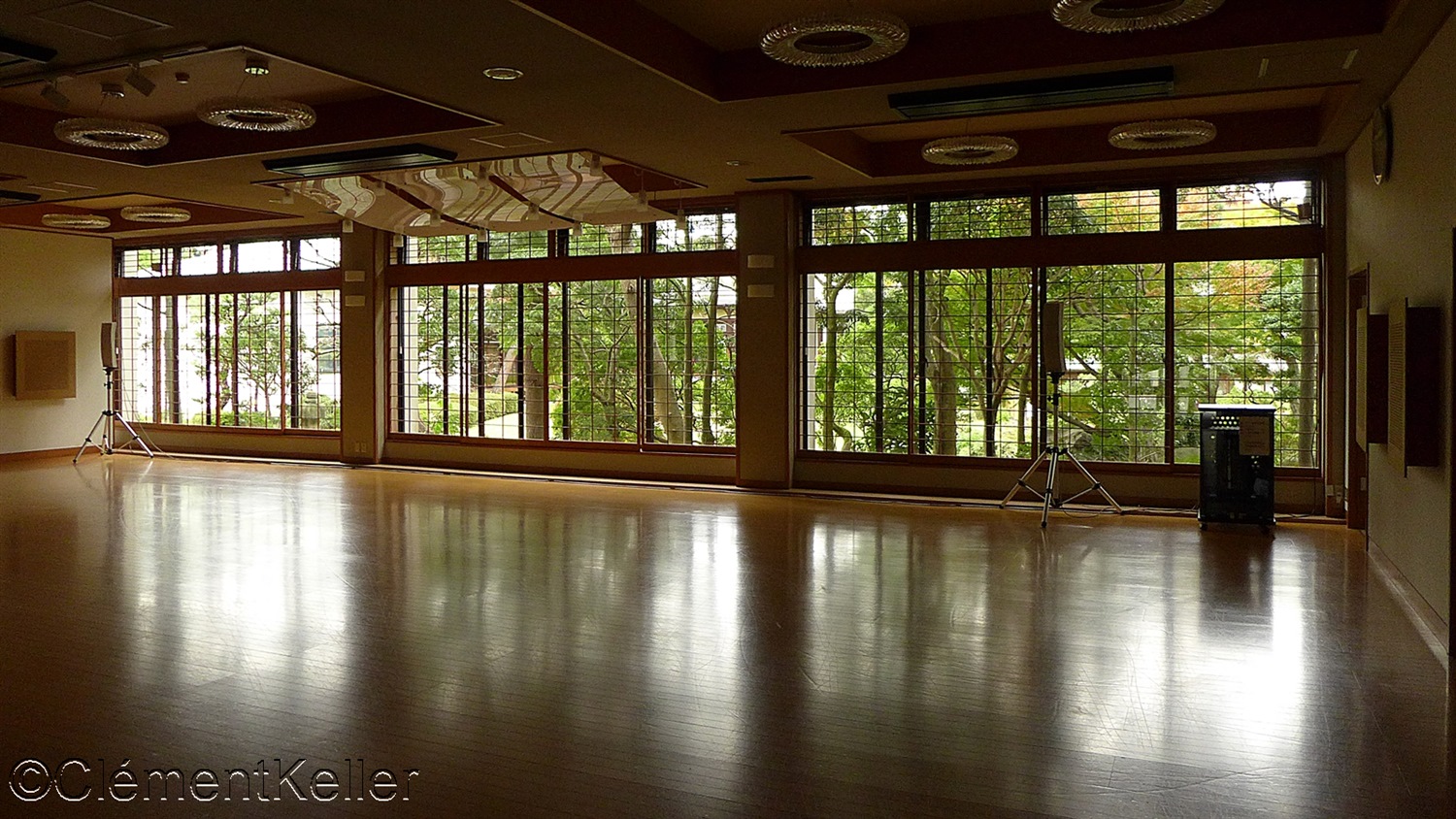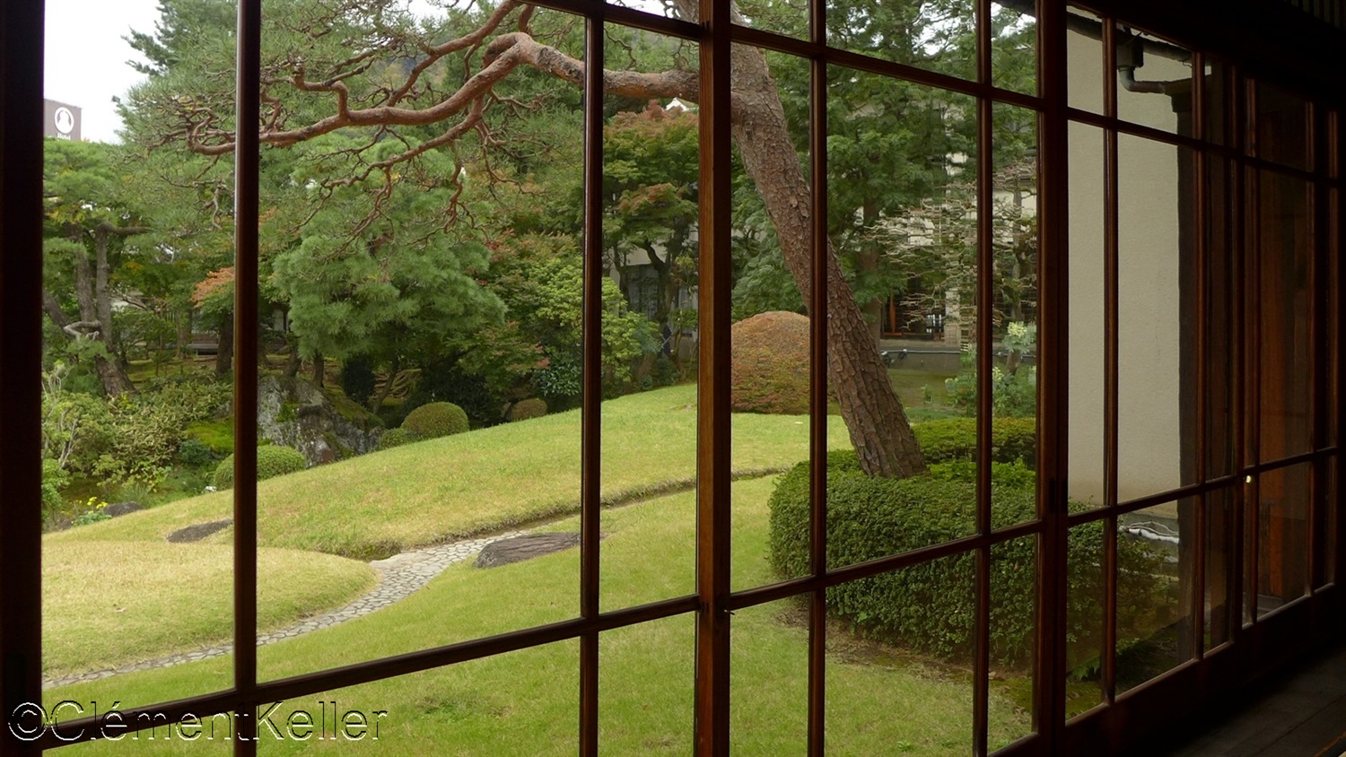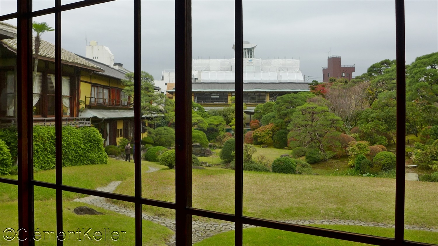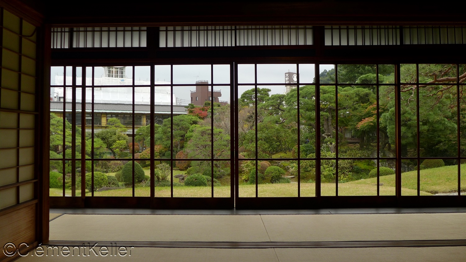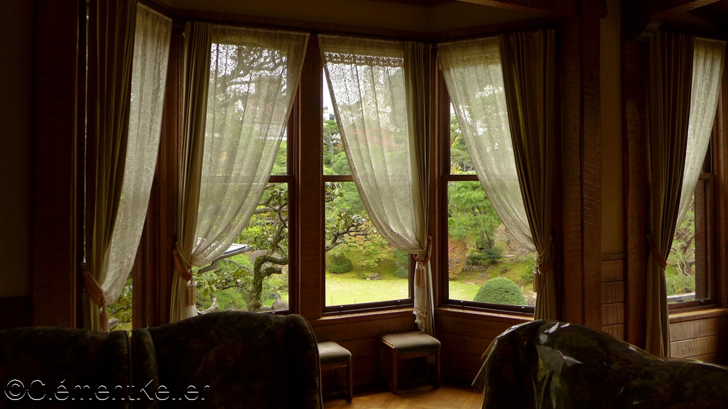 Les espaces intérieurs, mélange subtil d’architecture japonaise traditionnelle et d’éléments occidentaux de l’ère Taishō, s’ouvrent largement sur le jardin par de vastes baies vitrées et des vérandas en bois. Ainsi, depuis les salons, les pièces de réception et les chambres, le regard embrasse les jeux de lumière sur l’eau, la floraison des saisons et la composition savamment orchestrée des perspectives paysagères, offrant aux visiteurs un dialogue constant entre l’habitat et la nature.