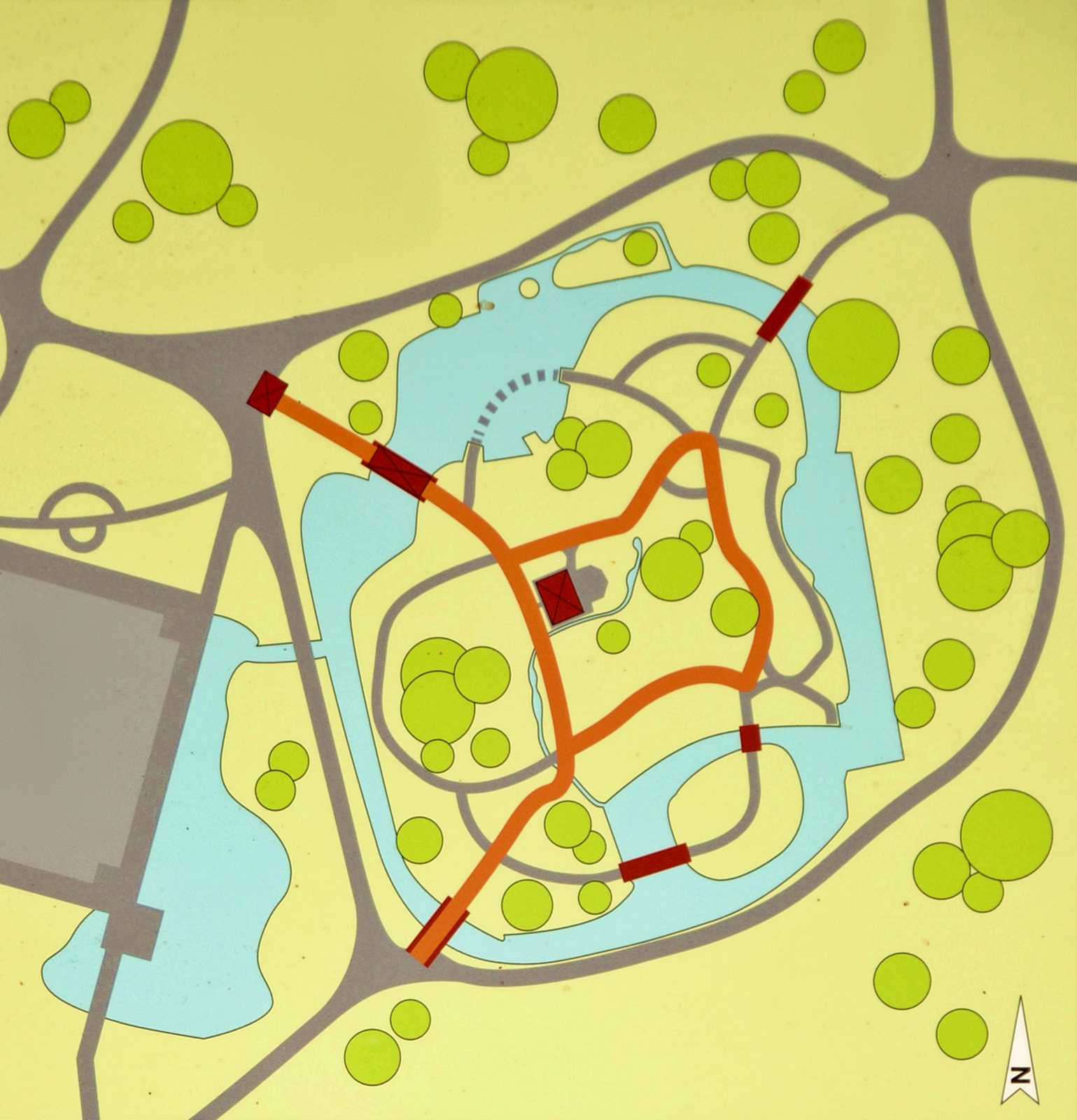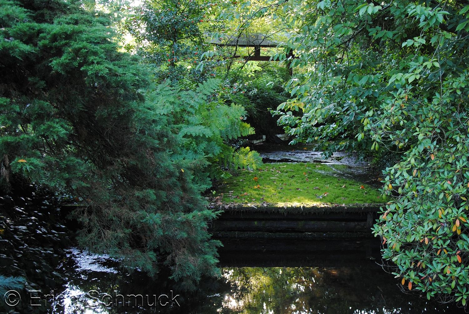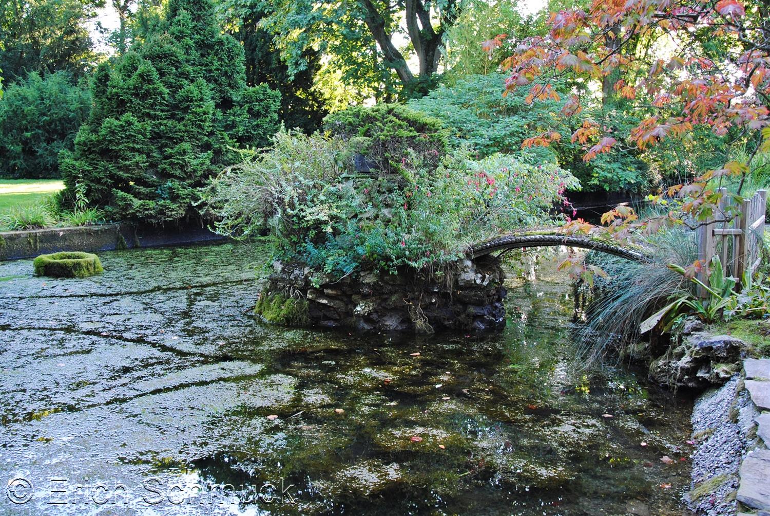 Auf einer Fläche von etwa 15.000 m² ist der Garten um ein System künstlich gespeister Teiche und Bäche herum angelegt, die den Spaziergang strukturieren. Die Wege führen über fünf Brücken, die die Windungen der Wasserläufe überspannen. Die „Mikadobrücke” ist die symbolträchtigste davon. Die „Laubenbrücke” ist mit einem Spalier überdacht und führt zum Teehaus „Teehaus”.