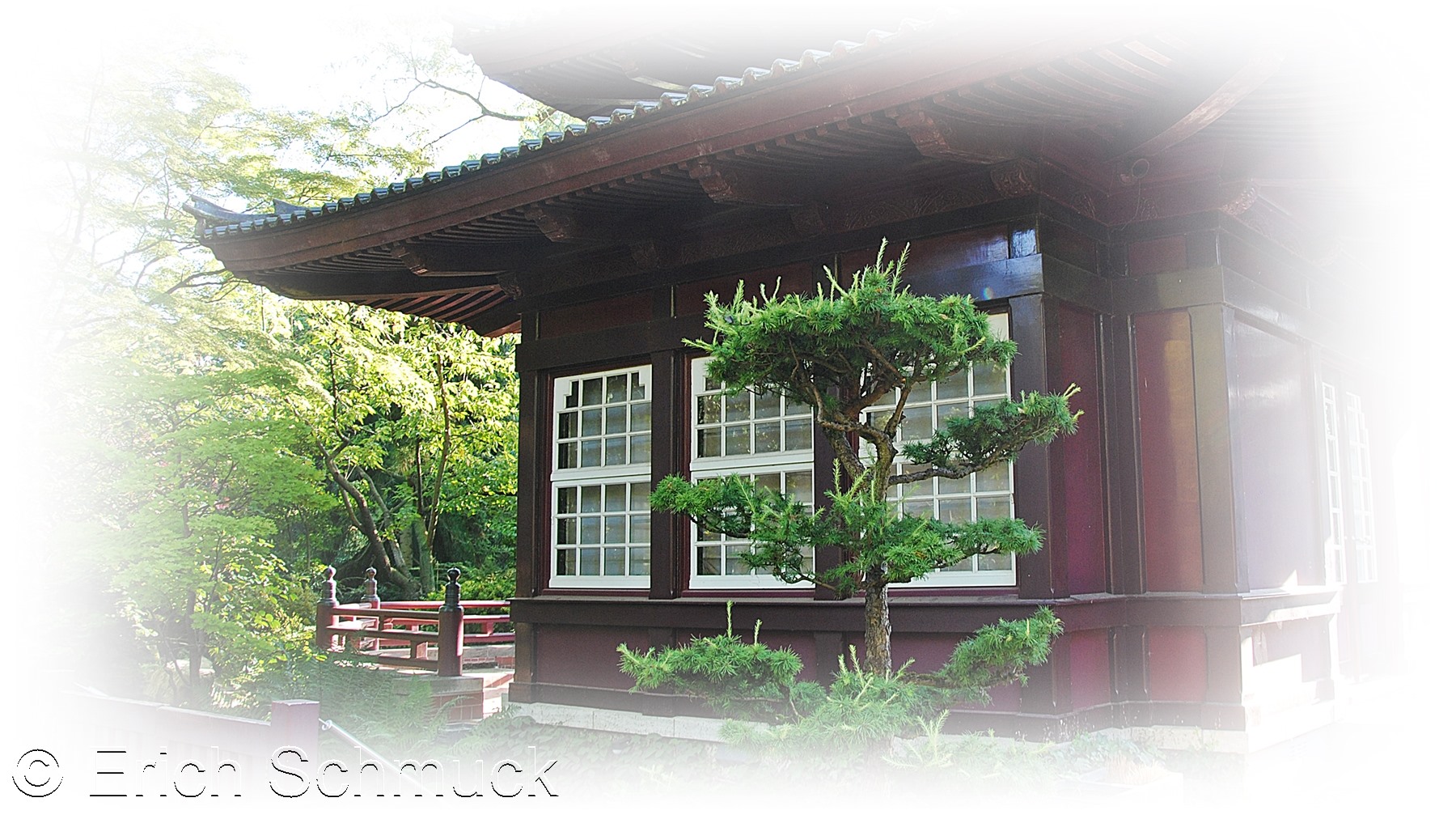 Dieses Teehaus ist das architektonische Highlight: ein Pavillon mit doppeltem Pagodendach, verziert mit geschnitzten Tafeln, die Drachen und Phönixe darstellen. Zwei bronzerne Tempel-Löwen bewachen den Eingang: Diese „Komainu”, Schutzfiguren, vertreiben böse Geister und sorgen symbolisch für die Gelassenheit der Besucher.