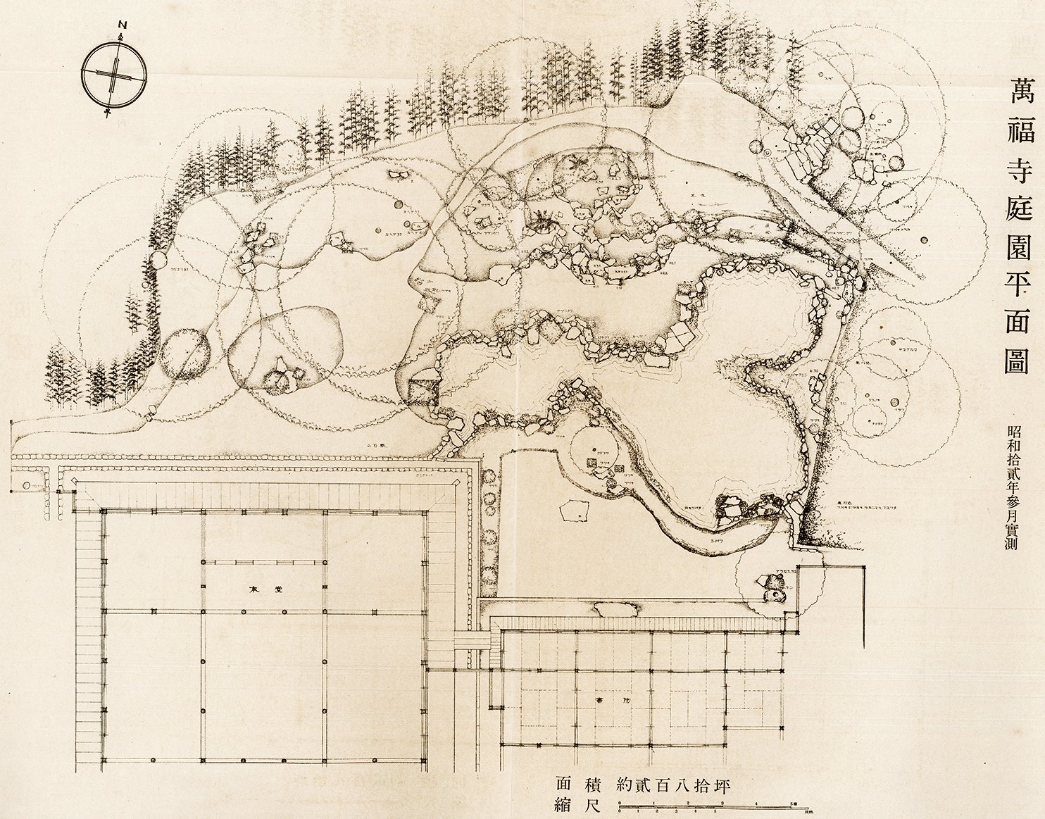 Plan tiré de « Histoire illustrée des jardins japonais, période Muromachi, vol. 1 » de Mirei Shigemori publié le 23 juillet 1937, communiqué par le service de promotion culturelle de la Ville de Masuda.