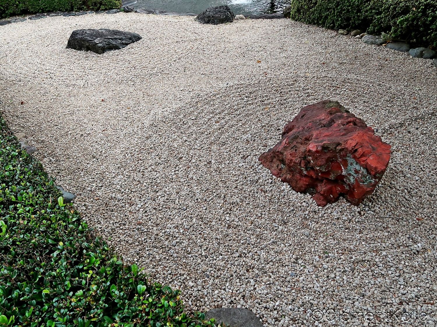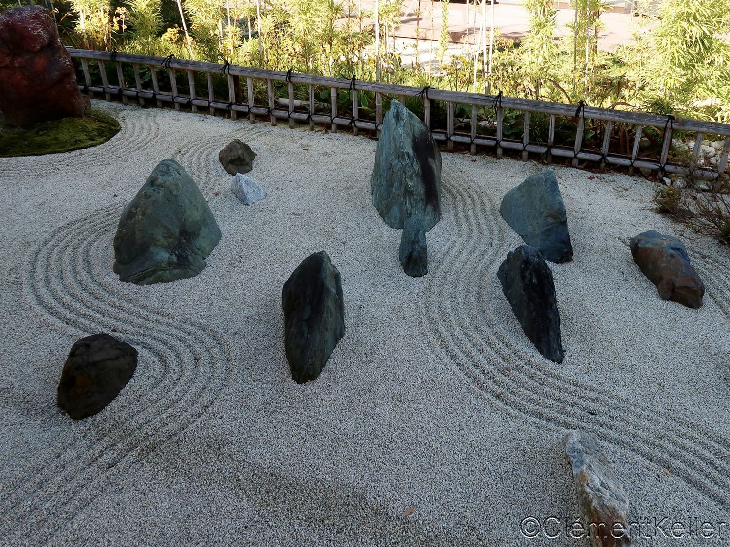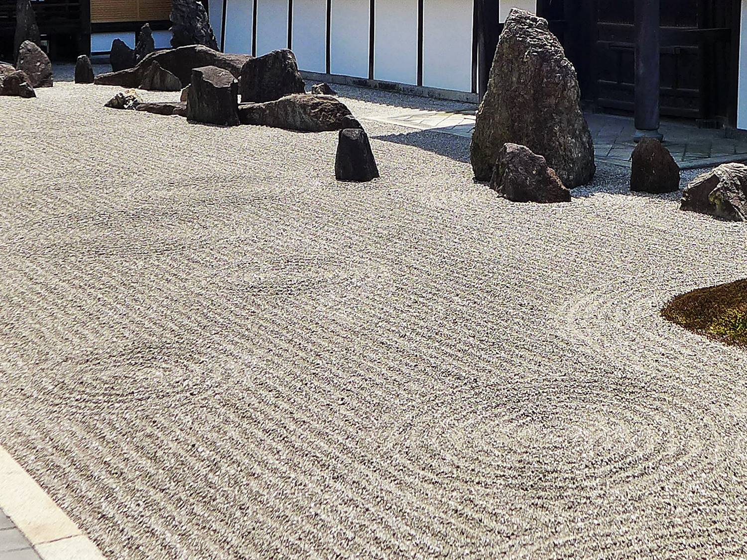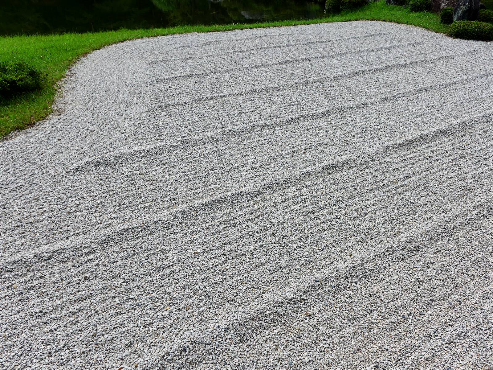 Le sable blanc, “shirasuna” 白砂, ou le gravier clair, “ishi-suna” 石砂, représente la mer ou la rivière, tandis que les pierres, “ishi”石, représentent des îles ou des montagnes.