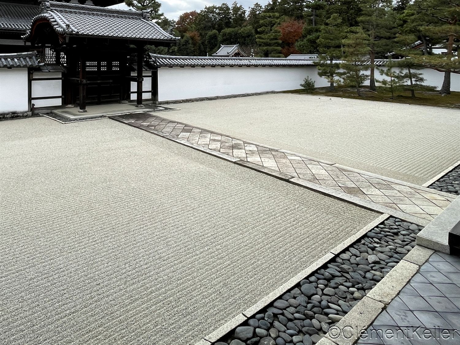 Voici les différents exemples de motifs en cercles dans les temples de Kennin-ji à Kyoto, Anyō-in à Kōya-san, Shōkoku-ji à Kyōto, Tōfuku-ji aménagé par Mirei SHIGEMORI au Sud de Kyōto, au Musée Takenaka Carpentry Tools à Kōbe, au temple Seiryō-ji à Hikone et à la résidence Kogawa à Masuda.