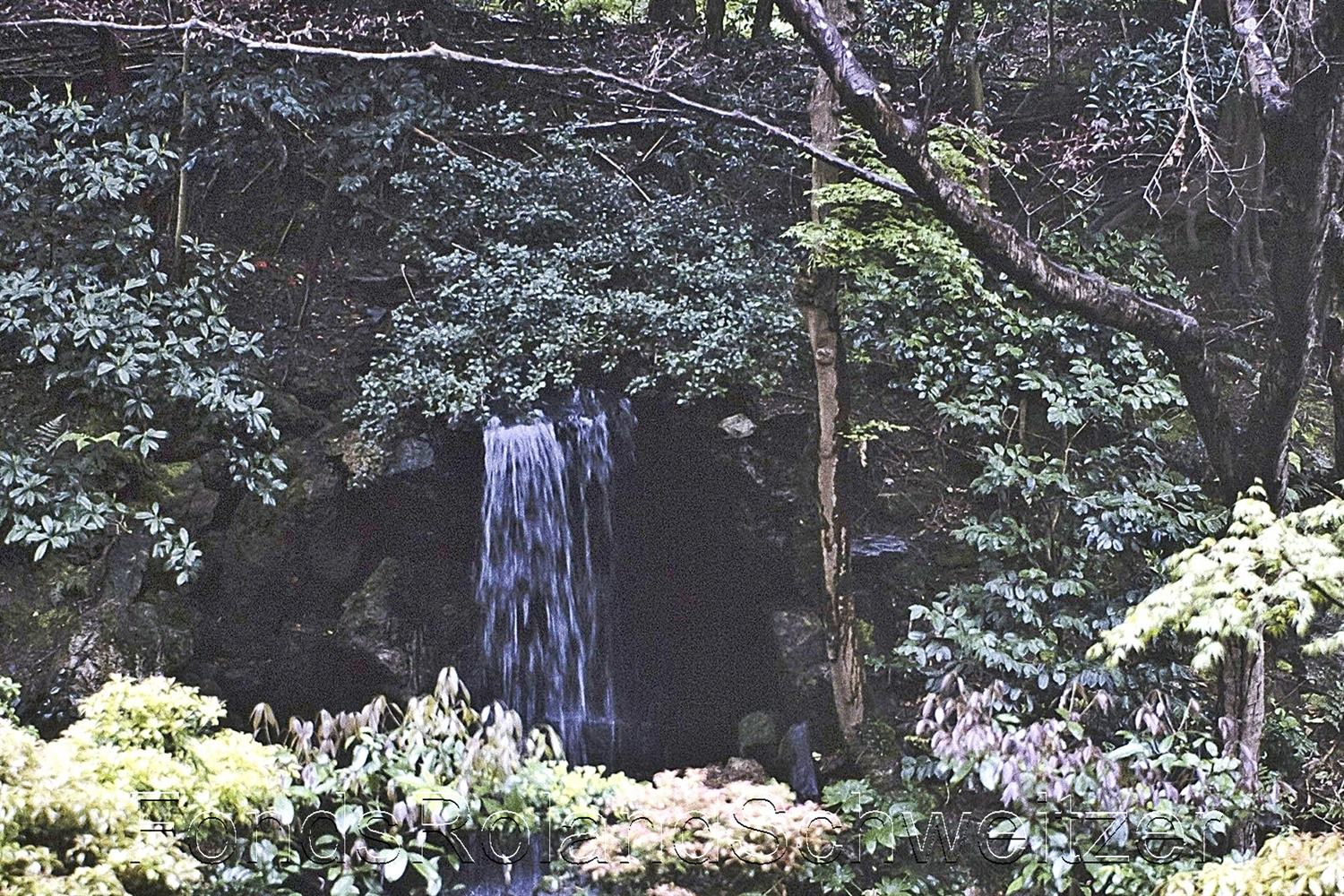 Vue vers la cascade depuis l’espace « Taki-no-ma » aménagé par Ueyakato Landscaping