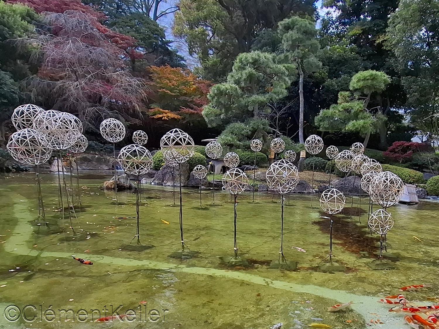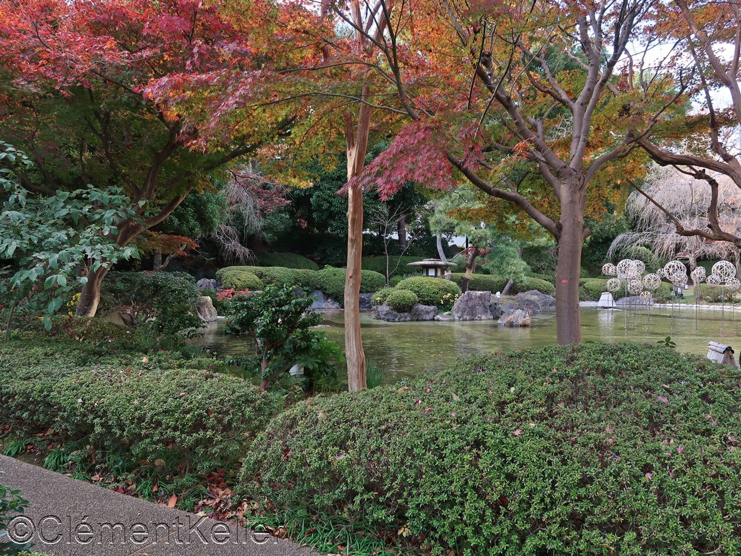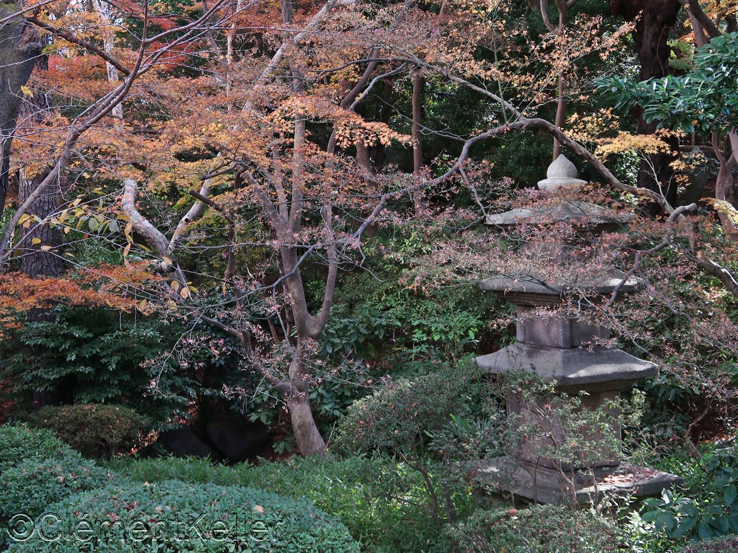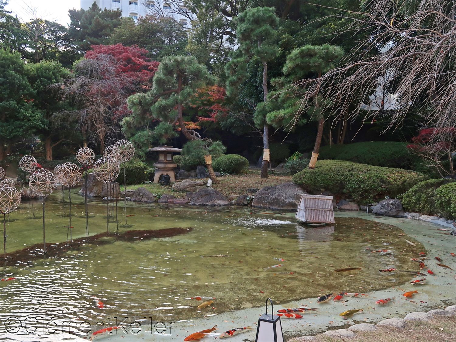 La composition du jardin repose sur un étang central « chi-sen » 池 autour duquel s’organise la promenade. Dans ce bassin a lieu deux fois par jour le nourrissage des carpes.