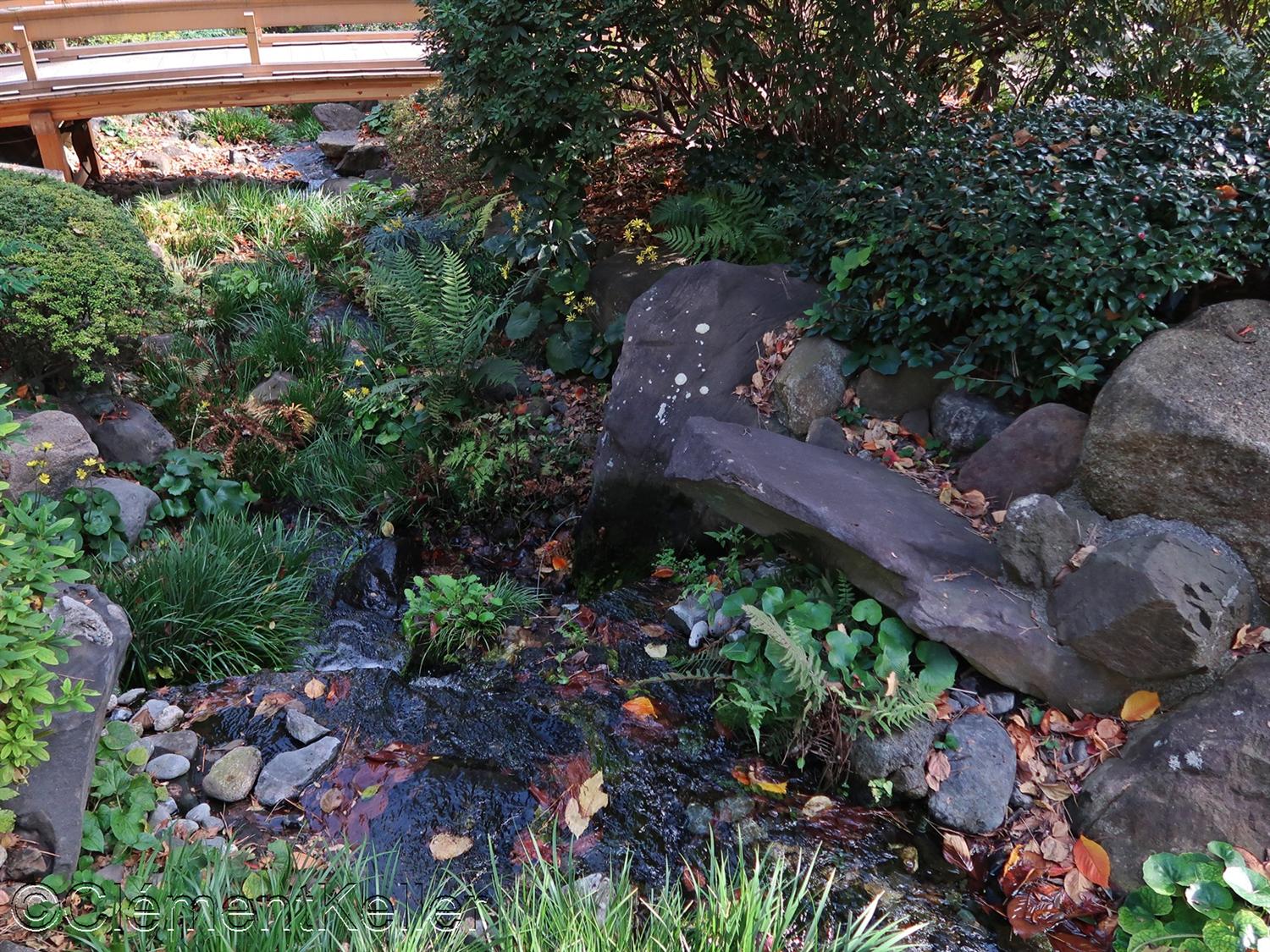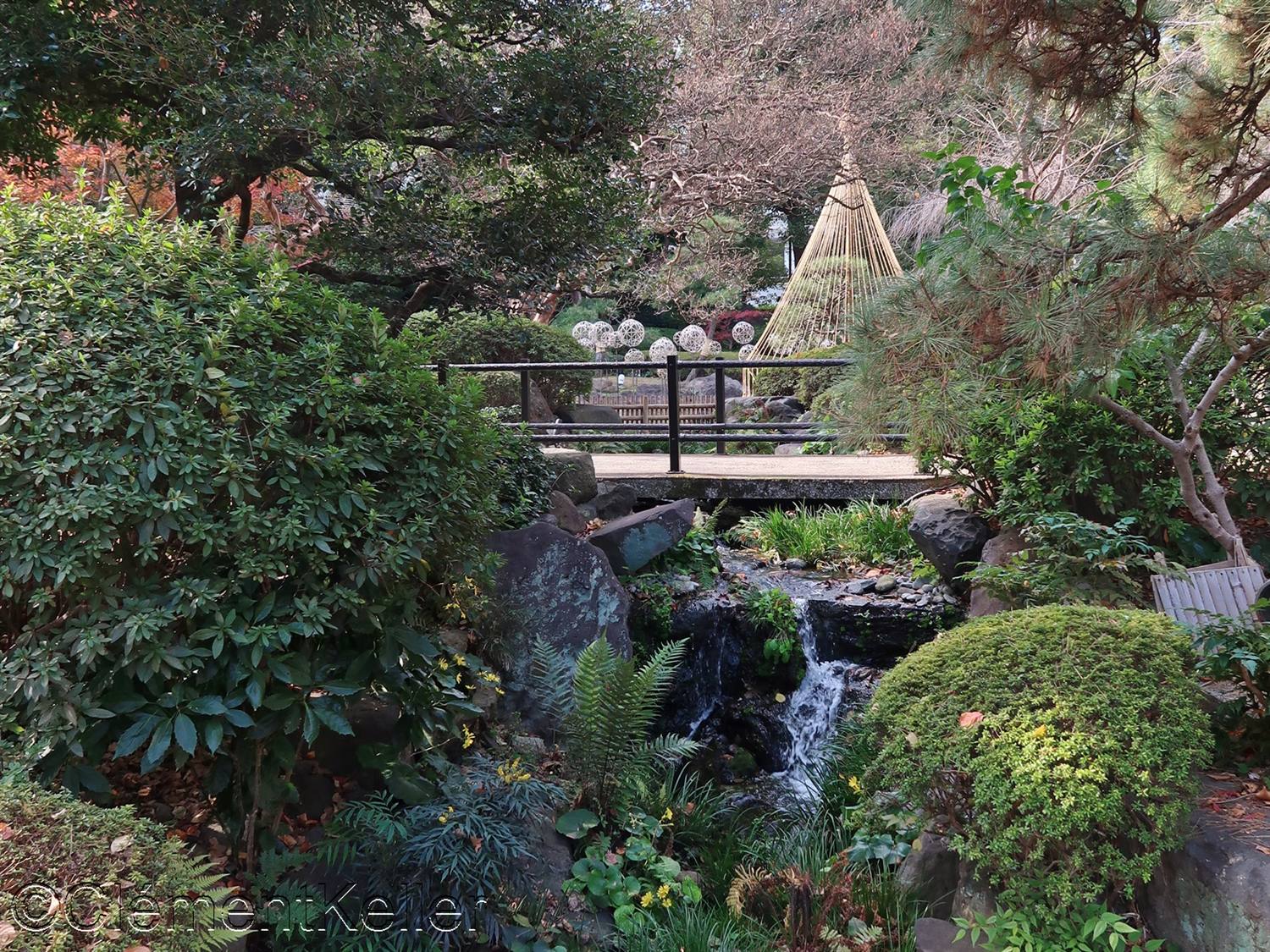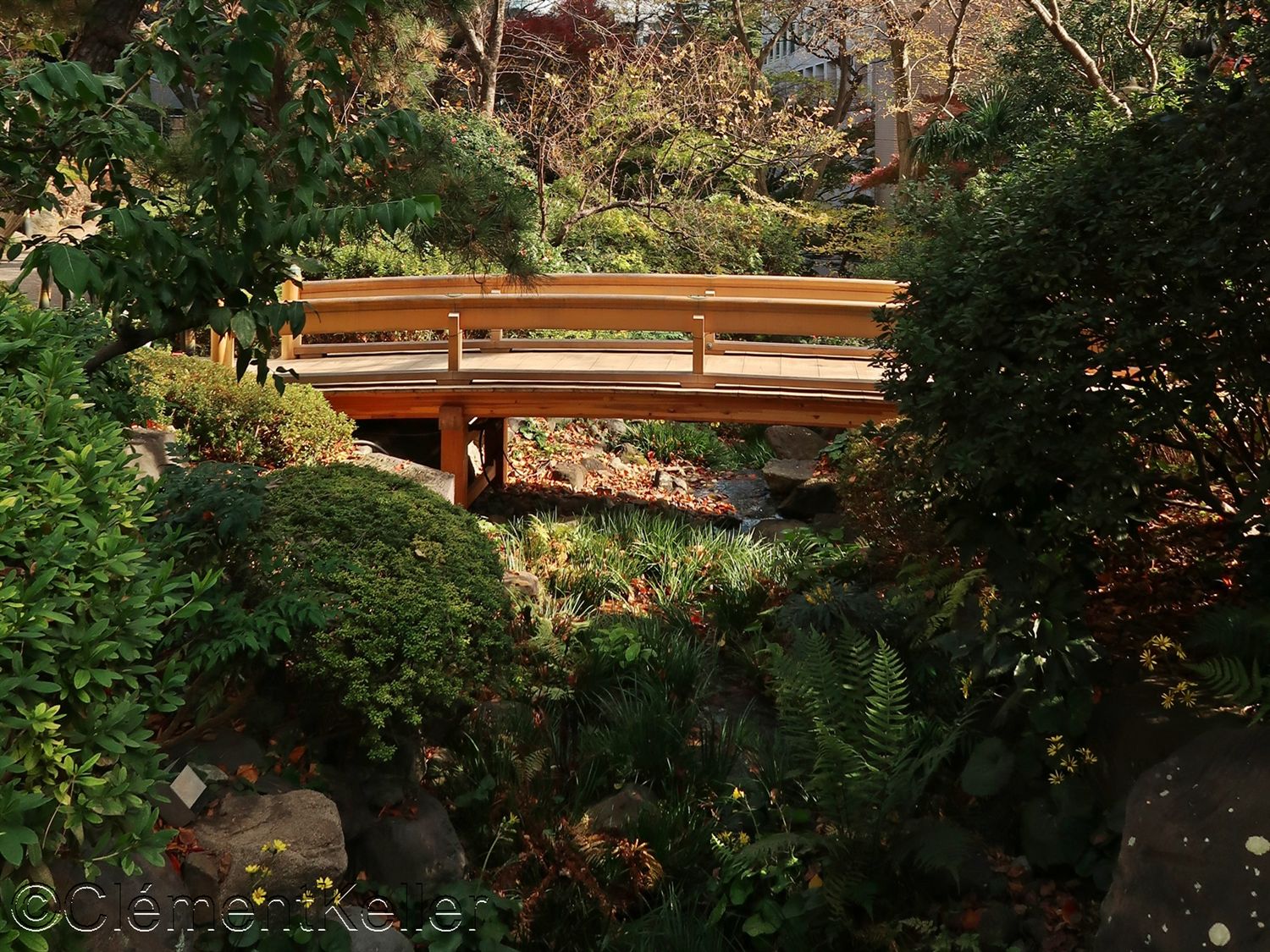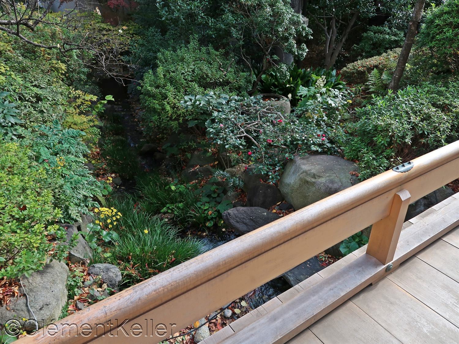 Le petit pont en arc, « sakurabashi » 桜橋, qui franchit un petit torrent constitue un autre axe central sur lequel sont  disposés les éléments architecturaux réimplantés sur le site.
