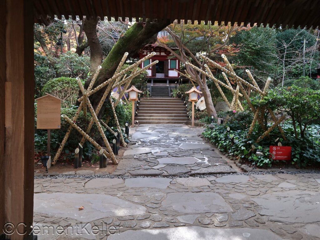 Les différents monuments : Kannon-dō, portail de temple et maison de thé.