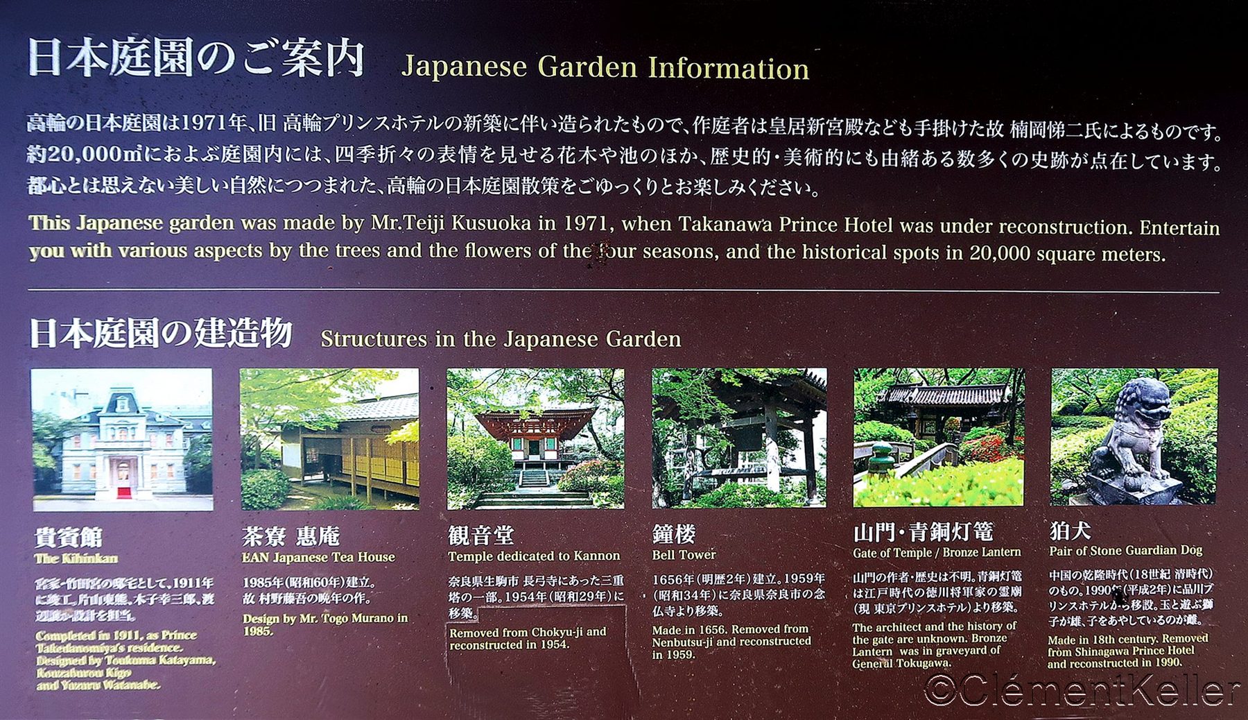 La création du jardin remonte à 1971, dans le cadre du développement hôtelier du site de Takanawa, sous l’impulsion de Yasujirō Tsutsumi 堤康次郎 (1889–1964), fondateur du groupe Seibu.