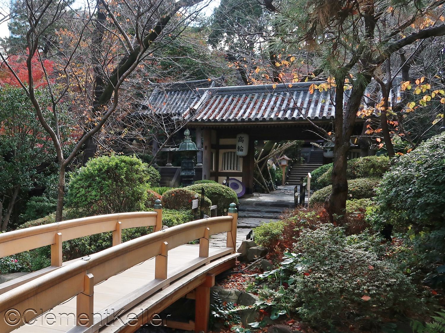 Le petit pont en arc, « sakurabashi » 桜橋, qui franchit un petit torrent constitue un autre axe central sur lequel sont  disposés les éléments architecturaux réimplantés sur le site.