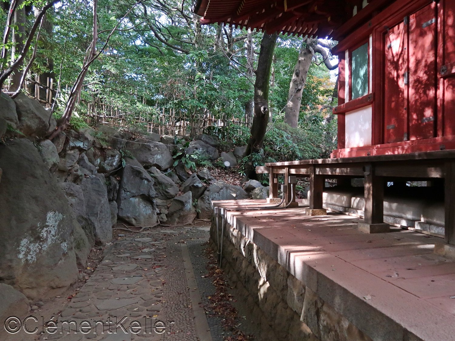 Des chemins sinueux et partiellement en pente traversent des zones boisées. La végétation est composée d’environ 210 cerisiers « sakura » 桜 de 17 variétés, d’érables, d’azalées et d’autres essences assurent une transformation continue du paysage au fil de l’année, renforcée par des illuminations nocturnes appelées « nijurokuya » revisitant la tradition datant de l’époque d’Edo de prier en attendant l’apparition de la lune sur les collines de Takanawa.