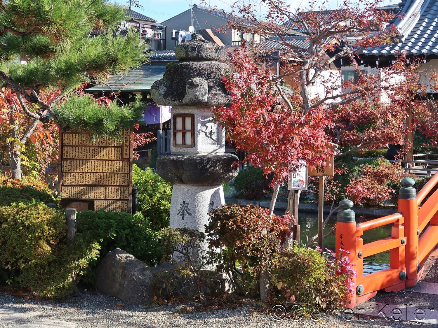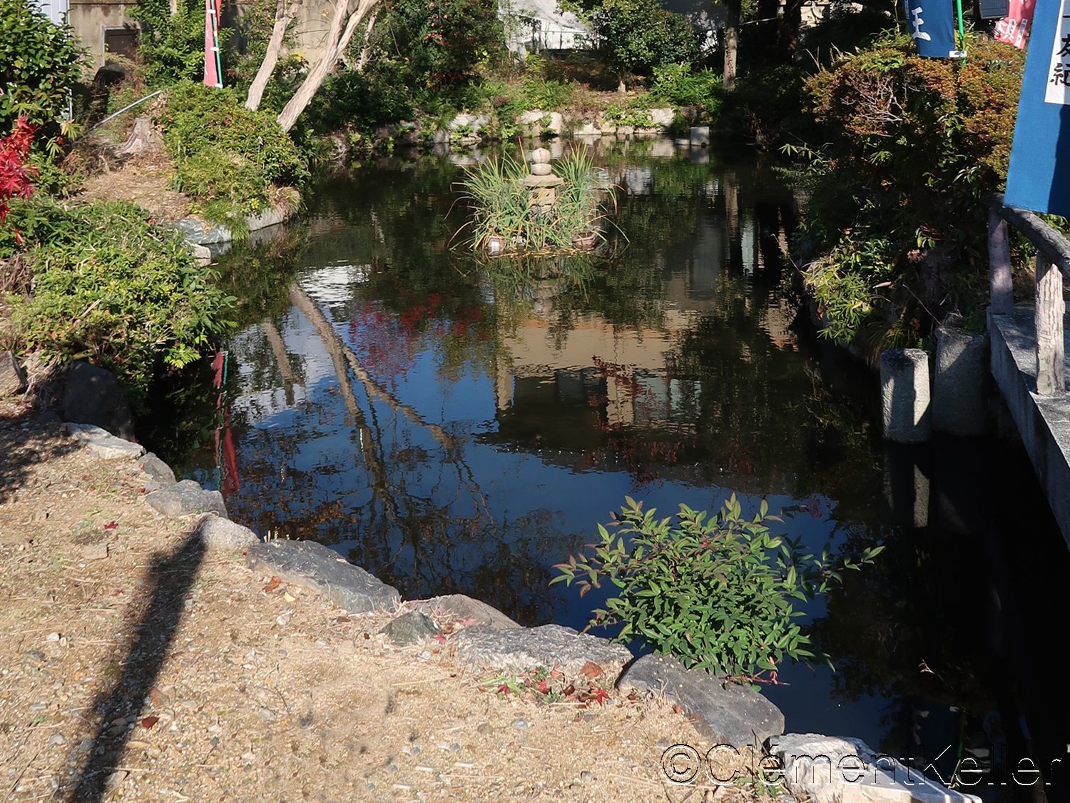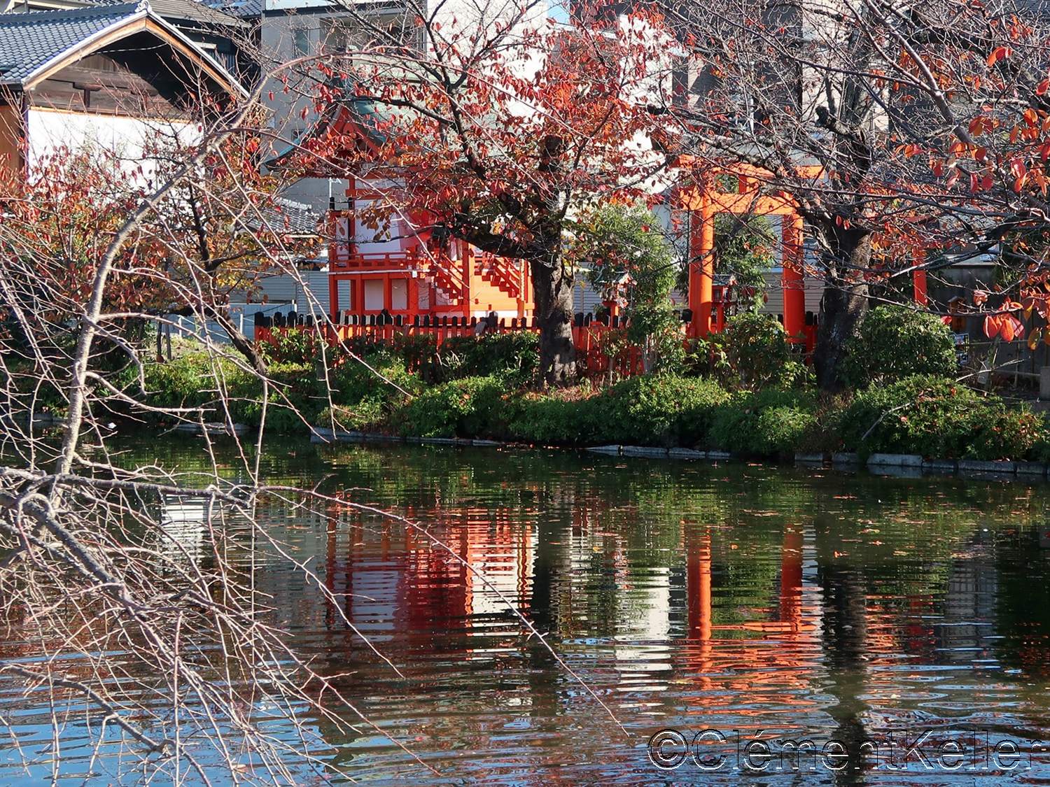 Autour du bassin se trouvent également plusieurs petits sanctuaires secondaires. Parmi eux figure Benten-sha 弁天社, dédié à la déesse Benzaiten, divinité associée à l’eau et à la musique. On y trouve aussi le sanctuaire Ehō-sha 恵方社.
