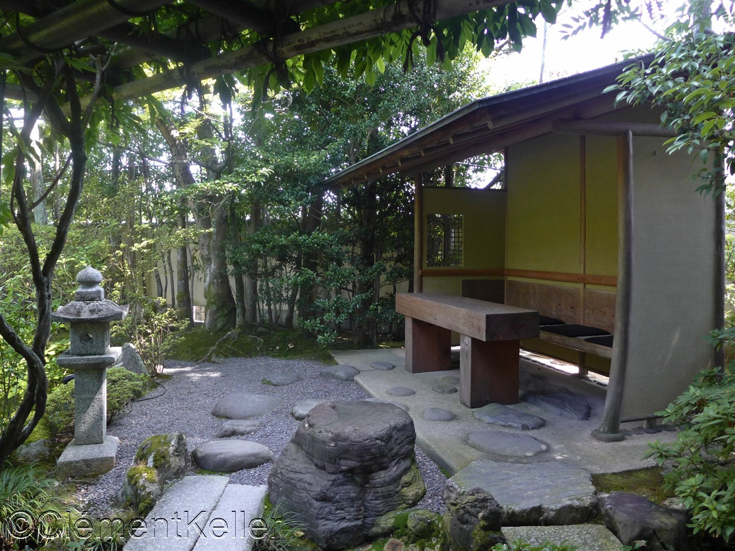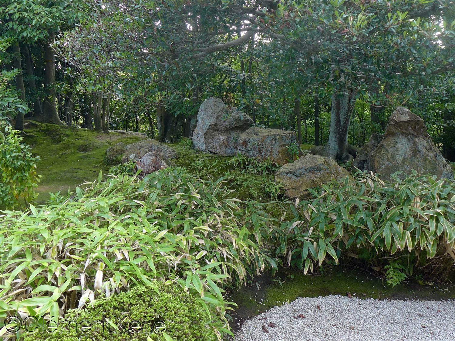 Enfin, au sud du complexe s’étend le jardin Yokō-en, « Yokō-en » 余香苑, conçu entre 1963 et 1966 par le paysagiste Nakane Kinsaku 中根金作 (1917-1995). Nakane est l’un des grands rénovateurs de l’art des jardins au XXème siècle.