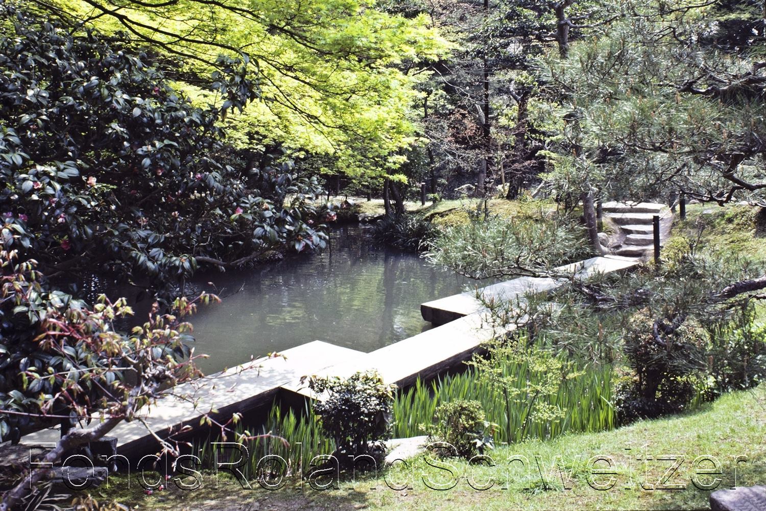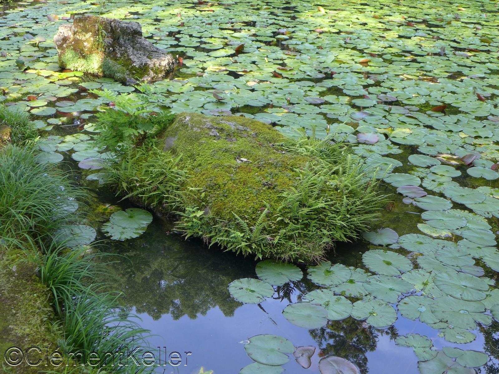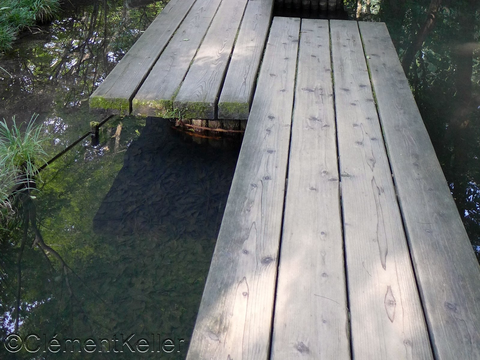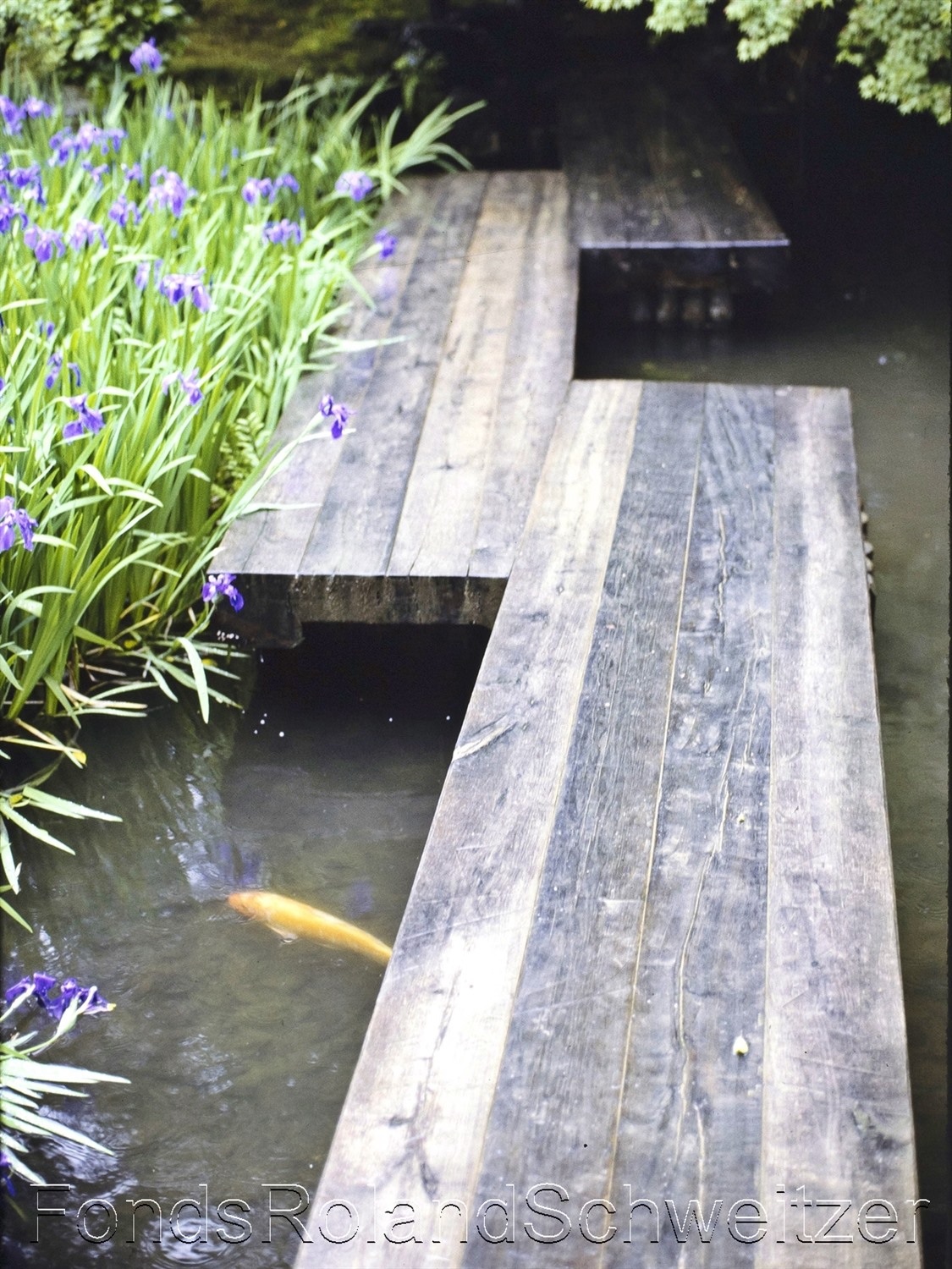 Le jardin promenade et ses ponts, en zigzag ou en pierres et la bassine.