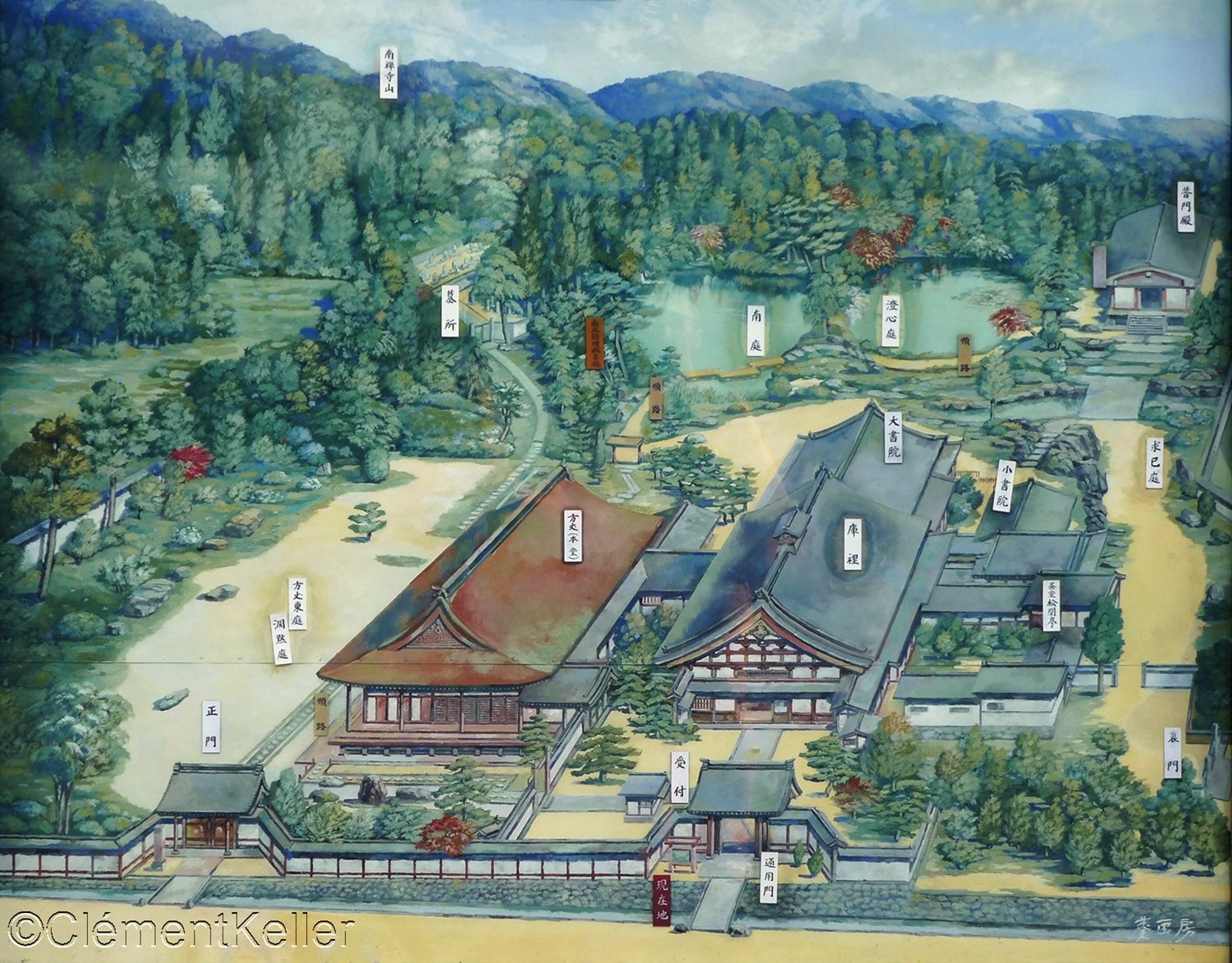 La localisation de Tenju-an avec dans le fond, au pied des collines, le temple Nanzen-ji.